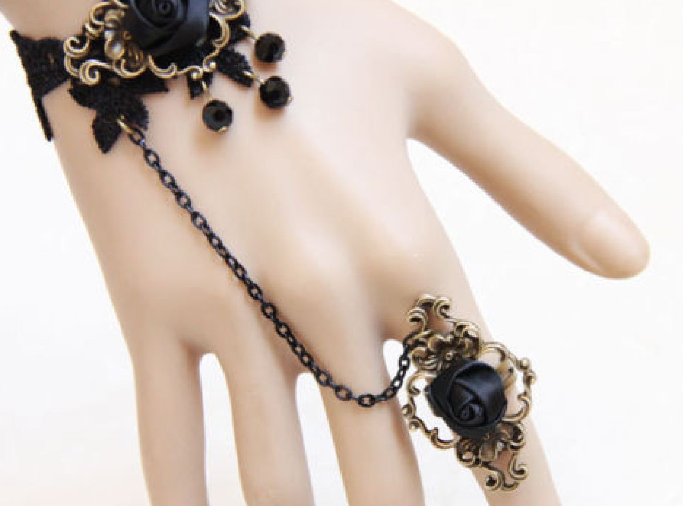 Black Lace Rose Gothic Goth Victorian Lolita Steampunk Rococo Style Bracelet