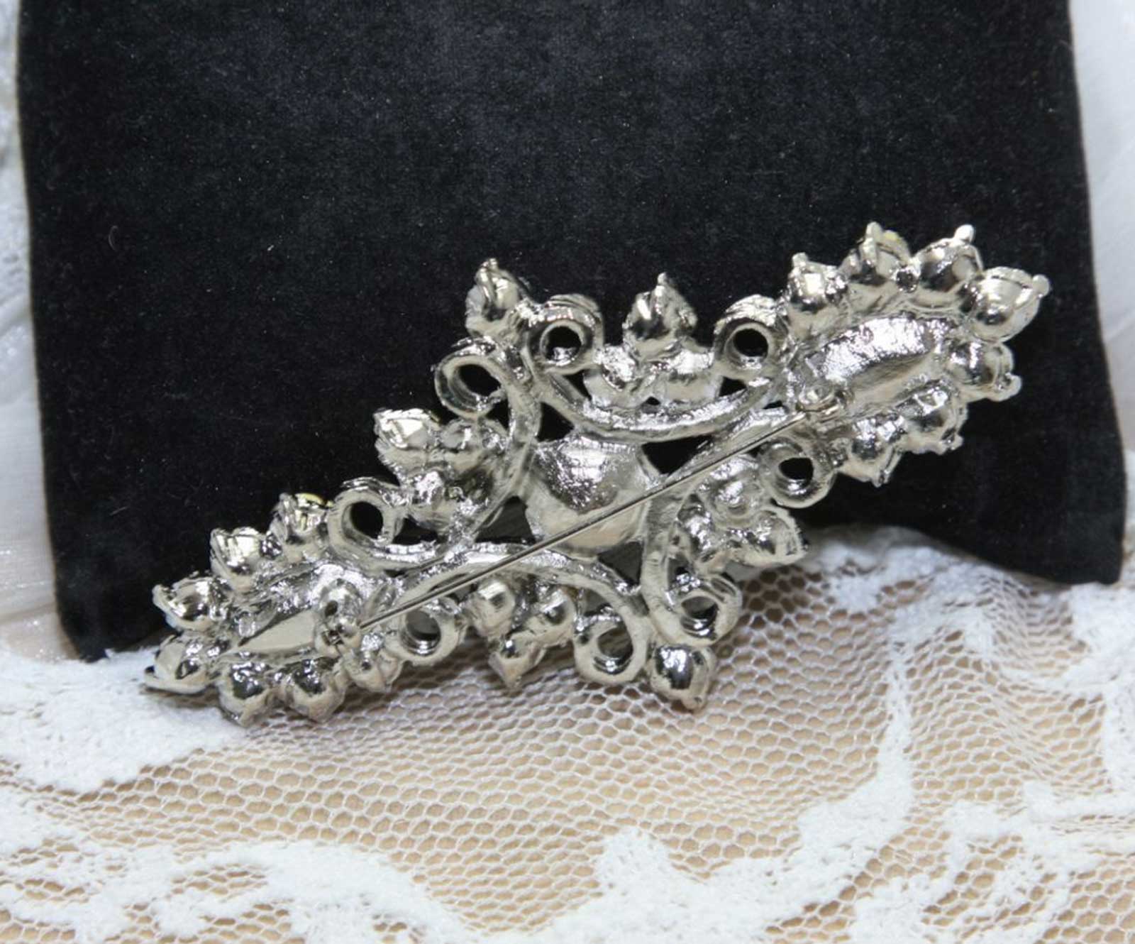 Rhinestone Crystals Vogue Rhombus Bridal Wedding Buckle Silver Plated Brooch Pin