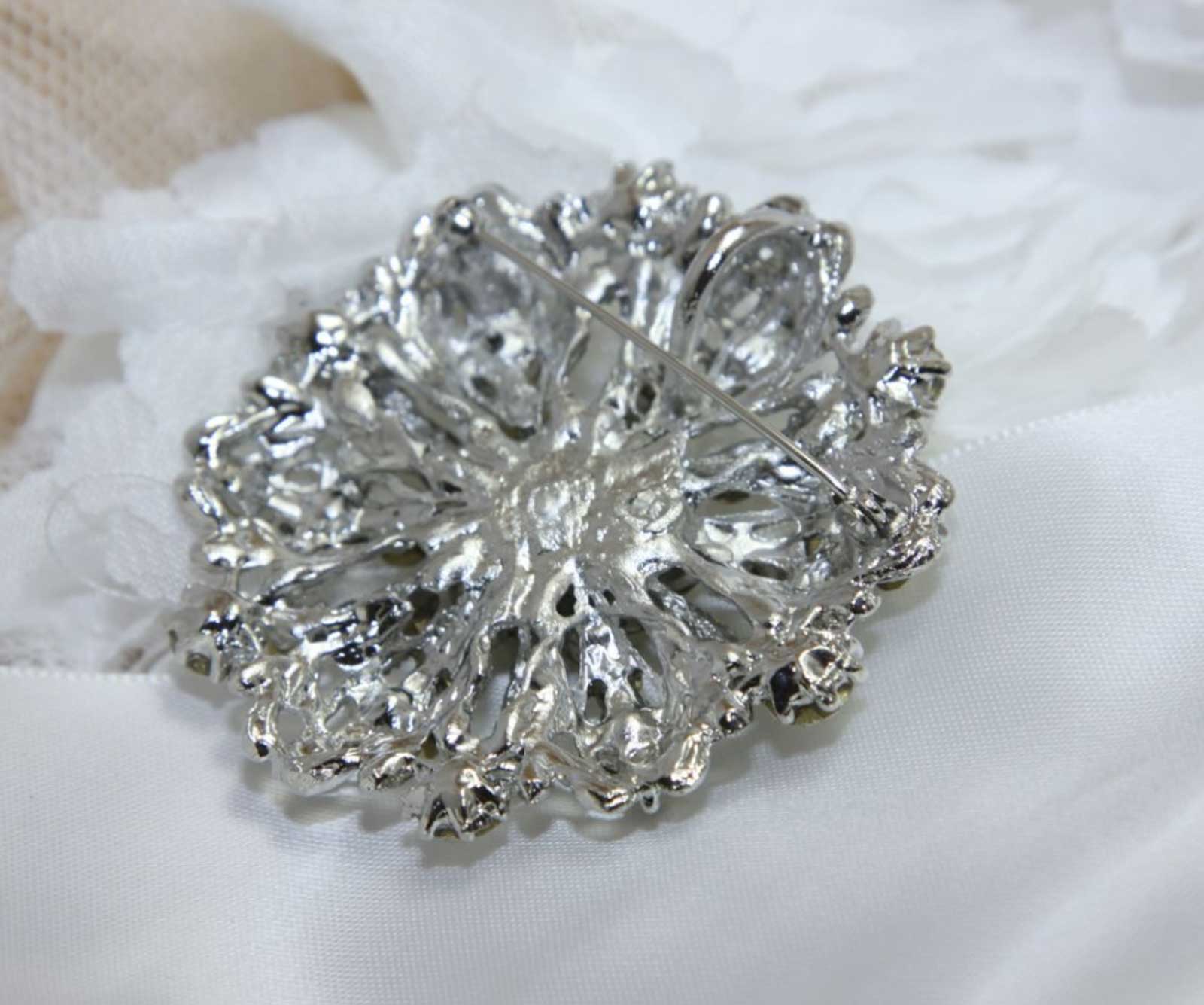 Crystal Rhinestone Bridal Floral Rose Cake Brooch Pin