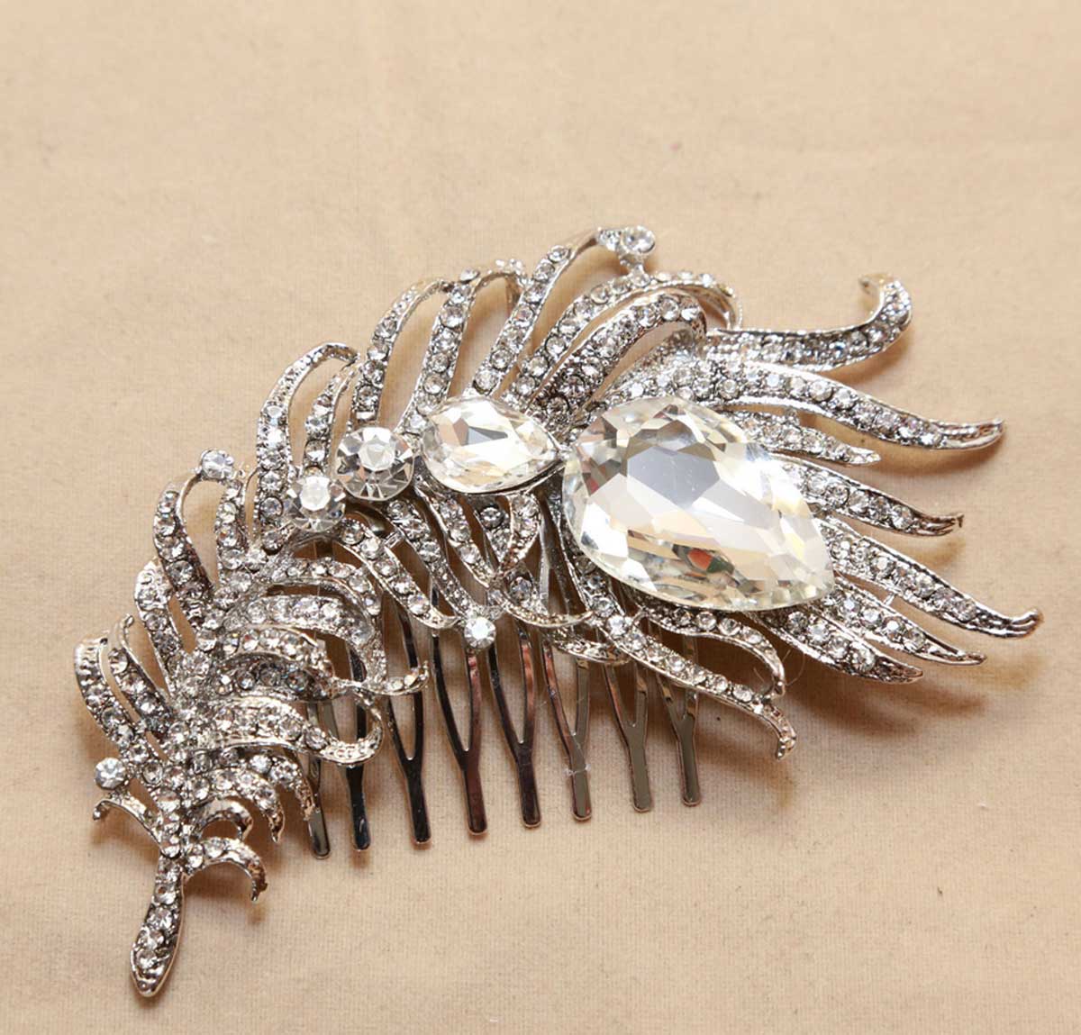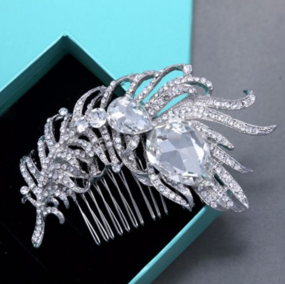 Vintage Style Feather Girls Rhinestone Wedding Bridal Tiara Bride Hair Comb