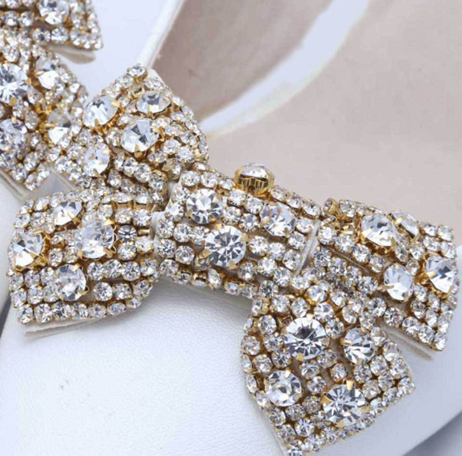 Wedding Shoe Clips Rhinestone Crystal Gold Bow Shoe Decoration
