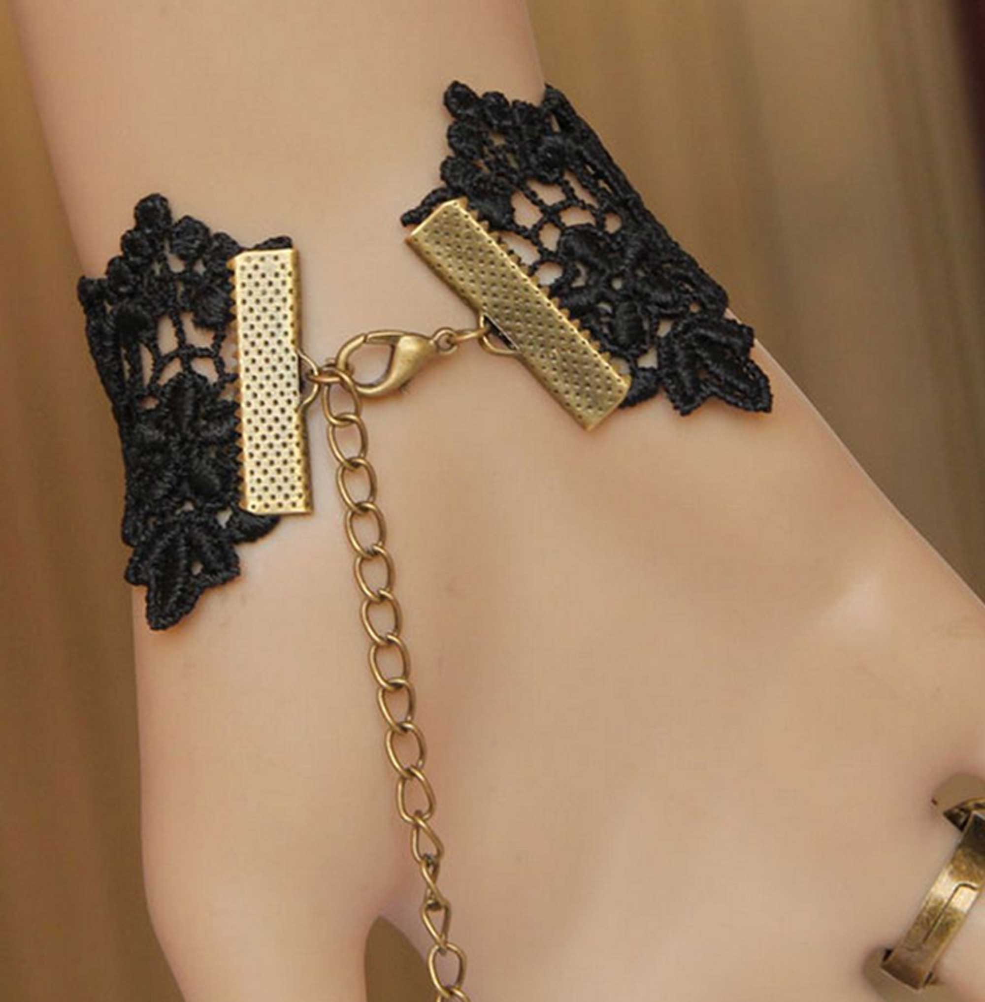 FREE SHIP- Black Lace Rose Drop Pendant Bracelet Party Gothic Lolita Copper Slave Ring
