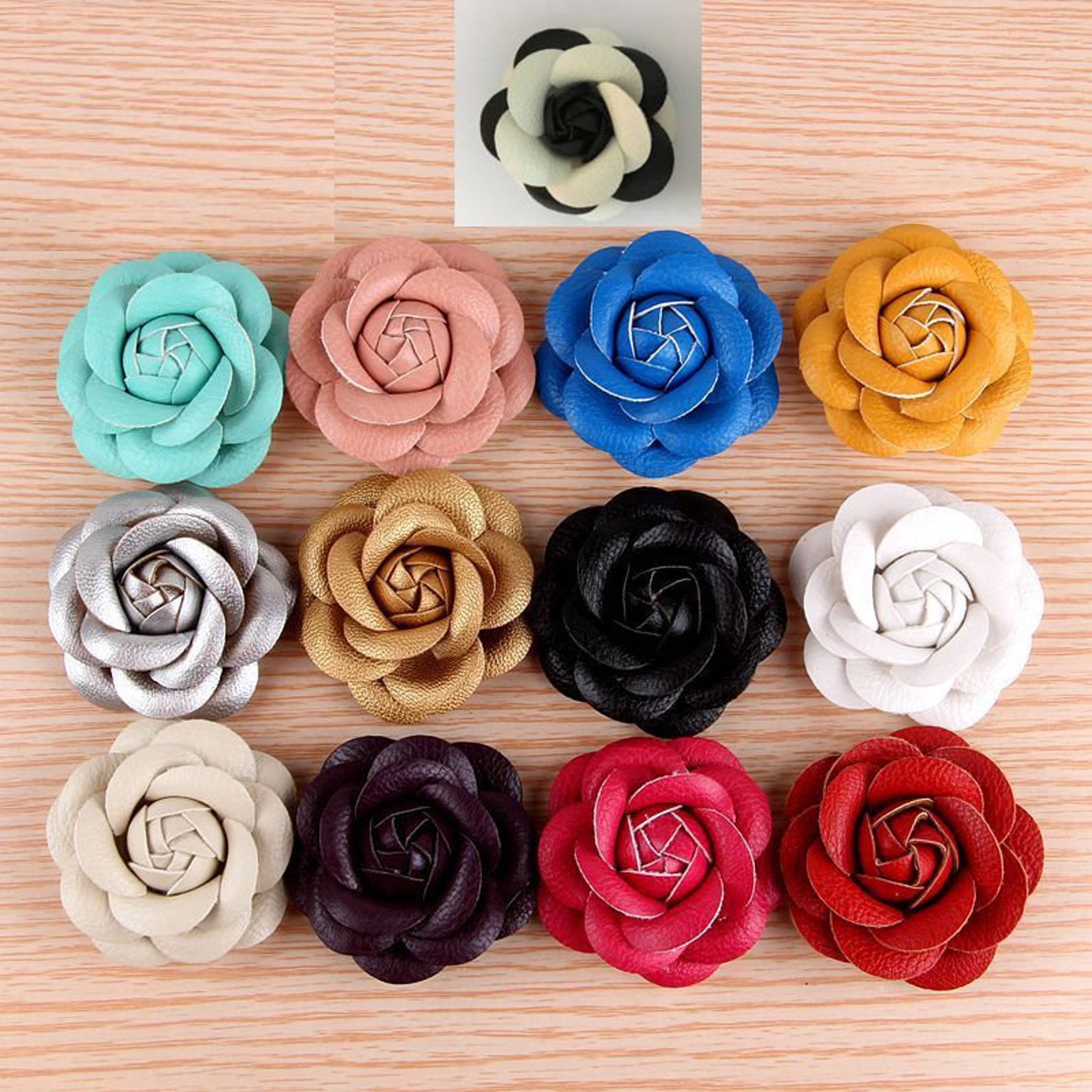2 Pieces Black Flower Faux Leather Flower Wedding Bridal High Heel Shoe Clips