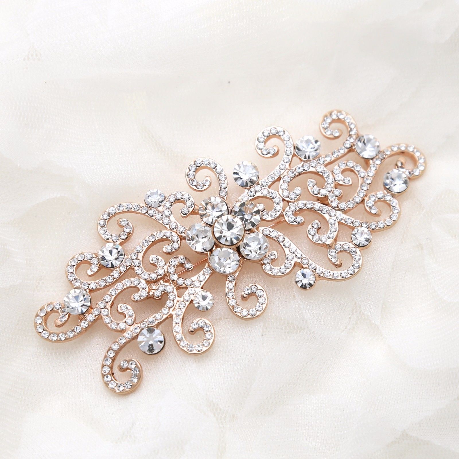 Vintage Style Motif Rose Gold Flower Rhinestone Wedding Bridal Brooch Pin