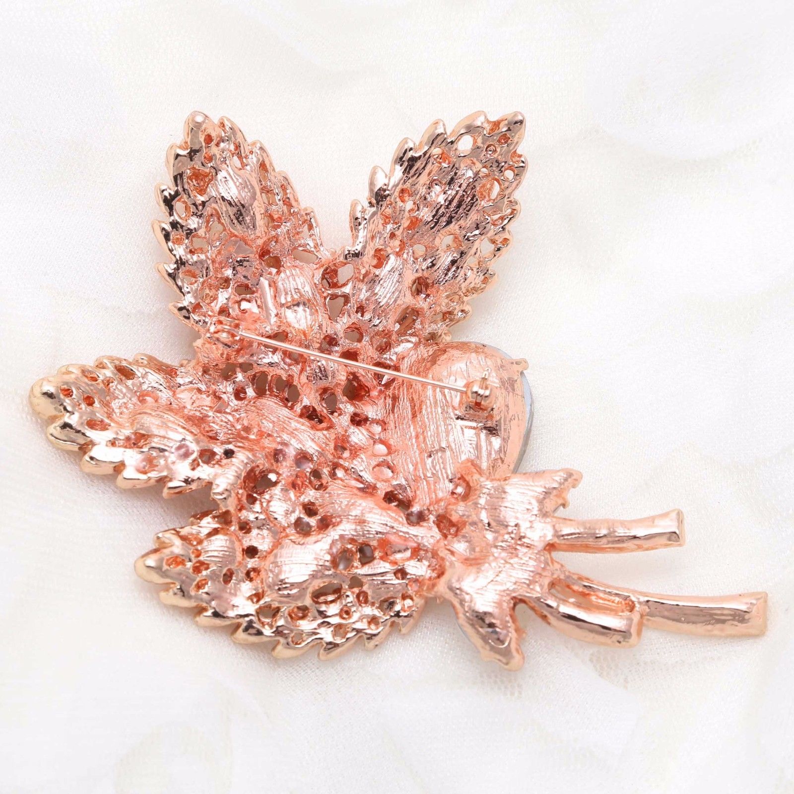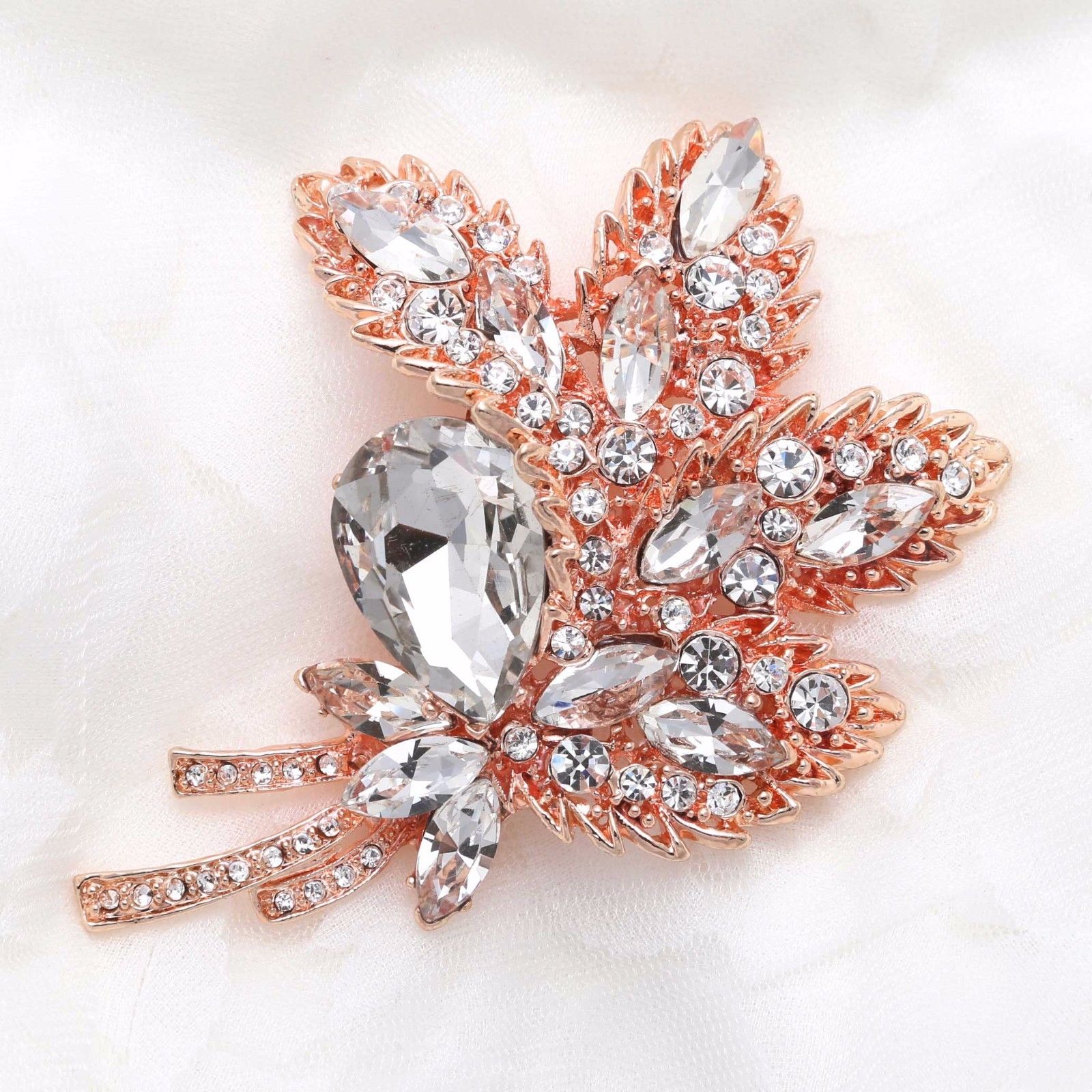 Large Crystal Rhinestone Rose Gold Tone Floral Leaf Wedding Bridal Brooch Pin