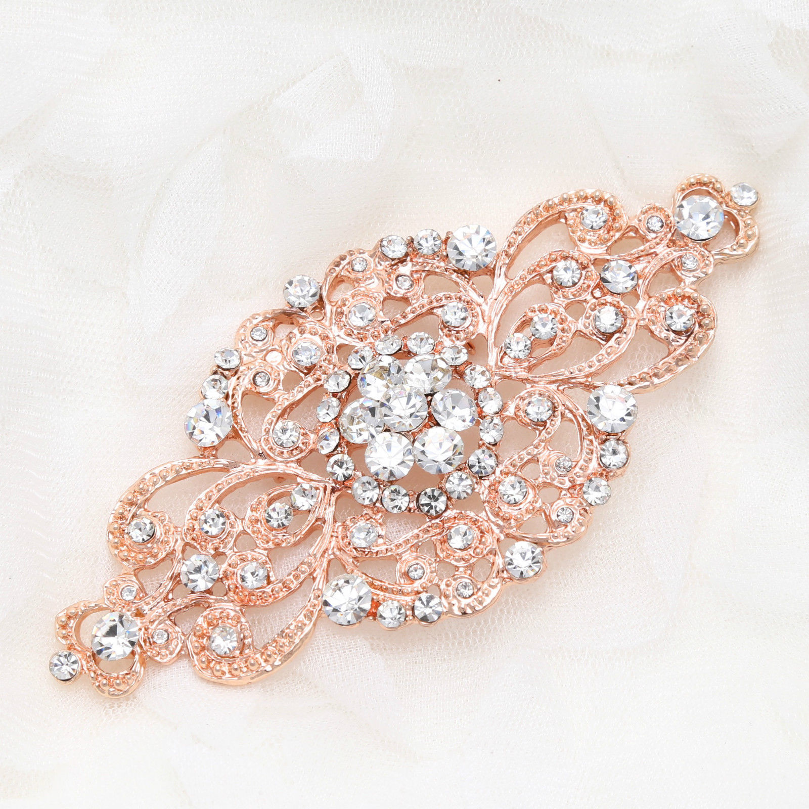 Rose Gold Vintage Victorian Style Motif Rhinestone Crystal Wedding Brooch Pin