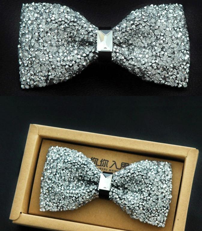 Gold Black Silver Red Pink Rhinestone Crystal Wedding Men Accessories Pre-Tied Bow Tie Bowtie