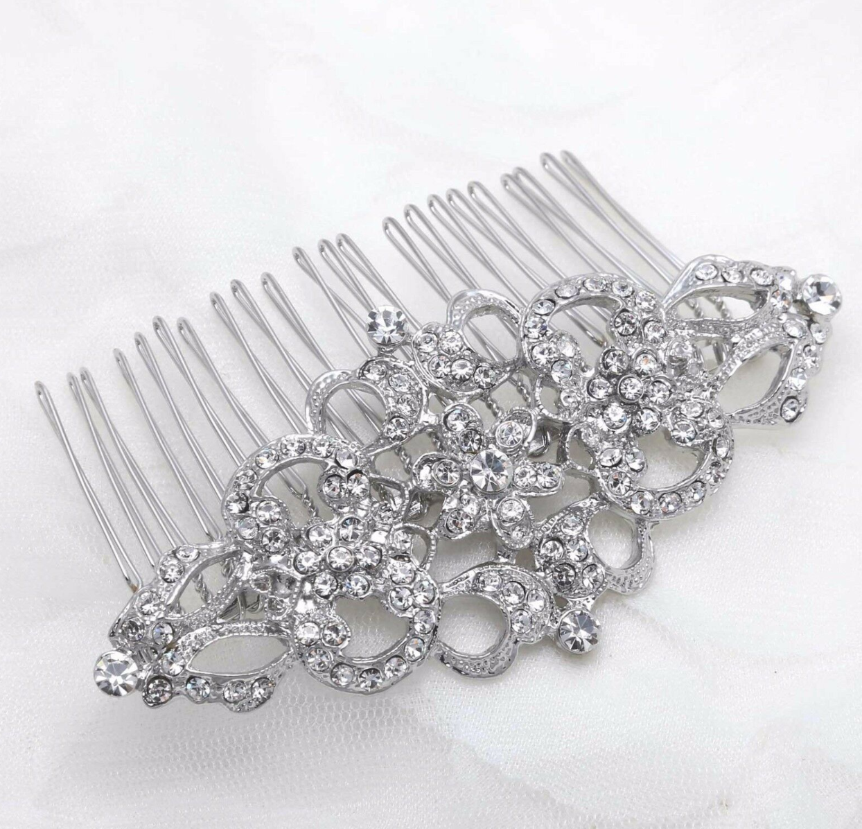 Crystal size: 9.5cm x 4cm Colour: silver,clear Description: Perfect hair accessory for bride at wedding or wear at vintage cocktail party.