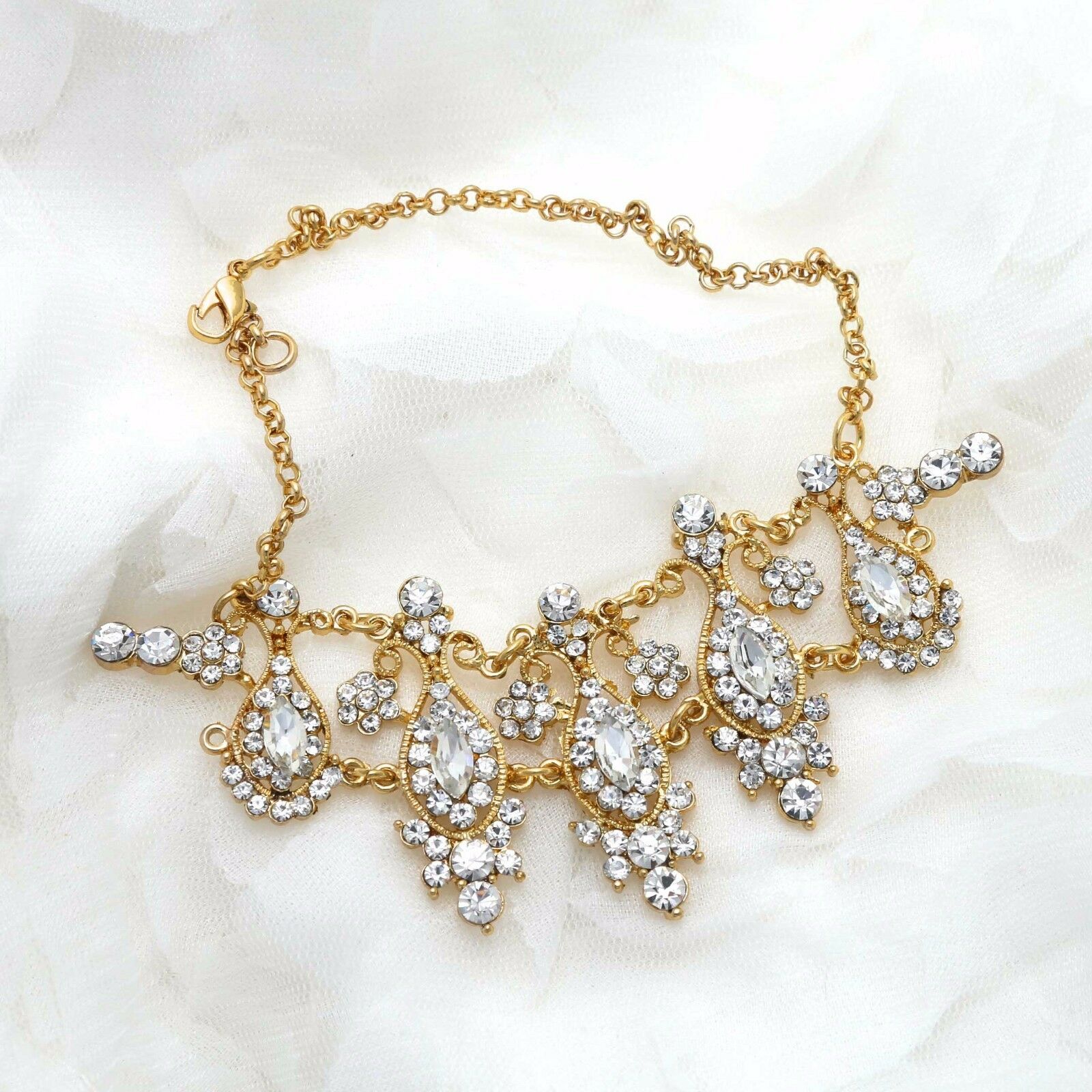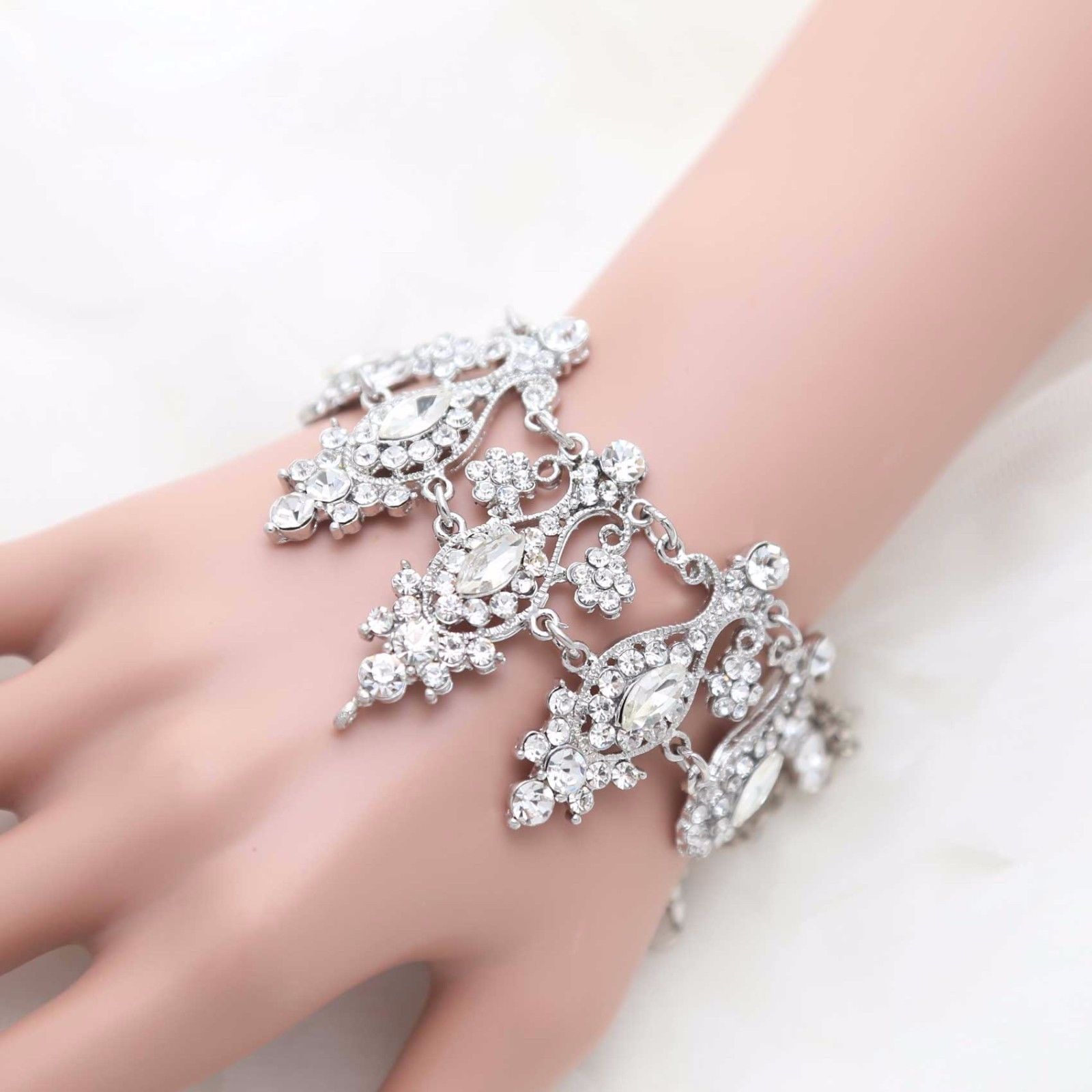 Vintage Style Silver Or Gold Plated Wedding Bracelet Chain Crystal Jewelry