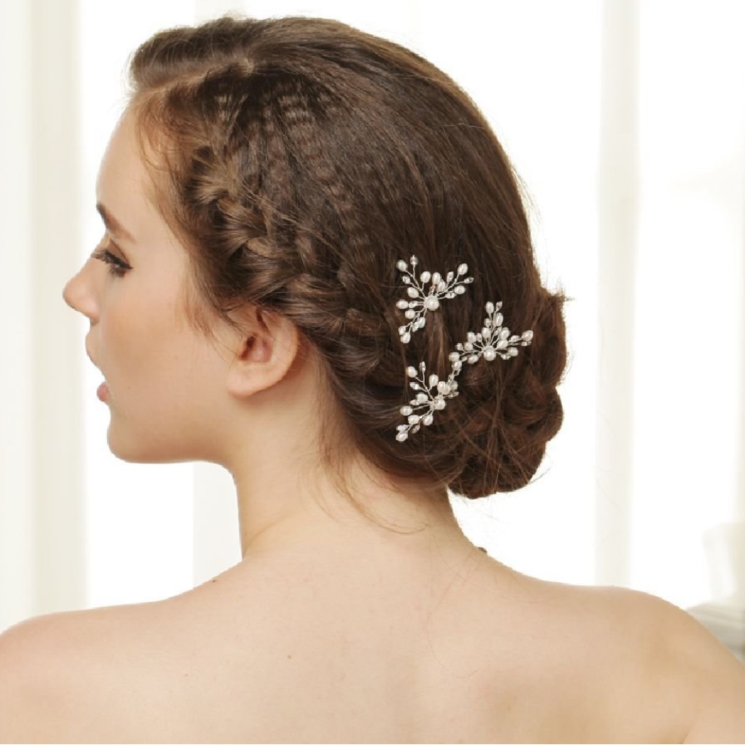 2 Pcs Beaded Pearl Rhinestone Crystal Wedding Hair Stick Pin