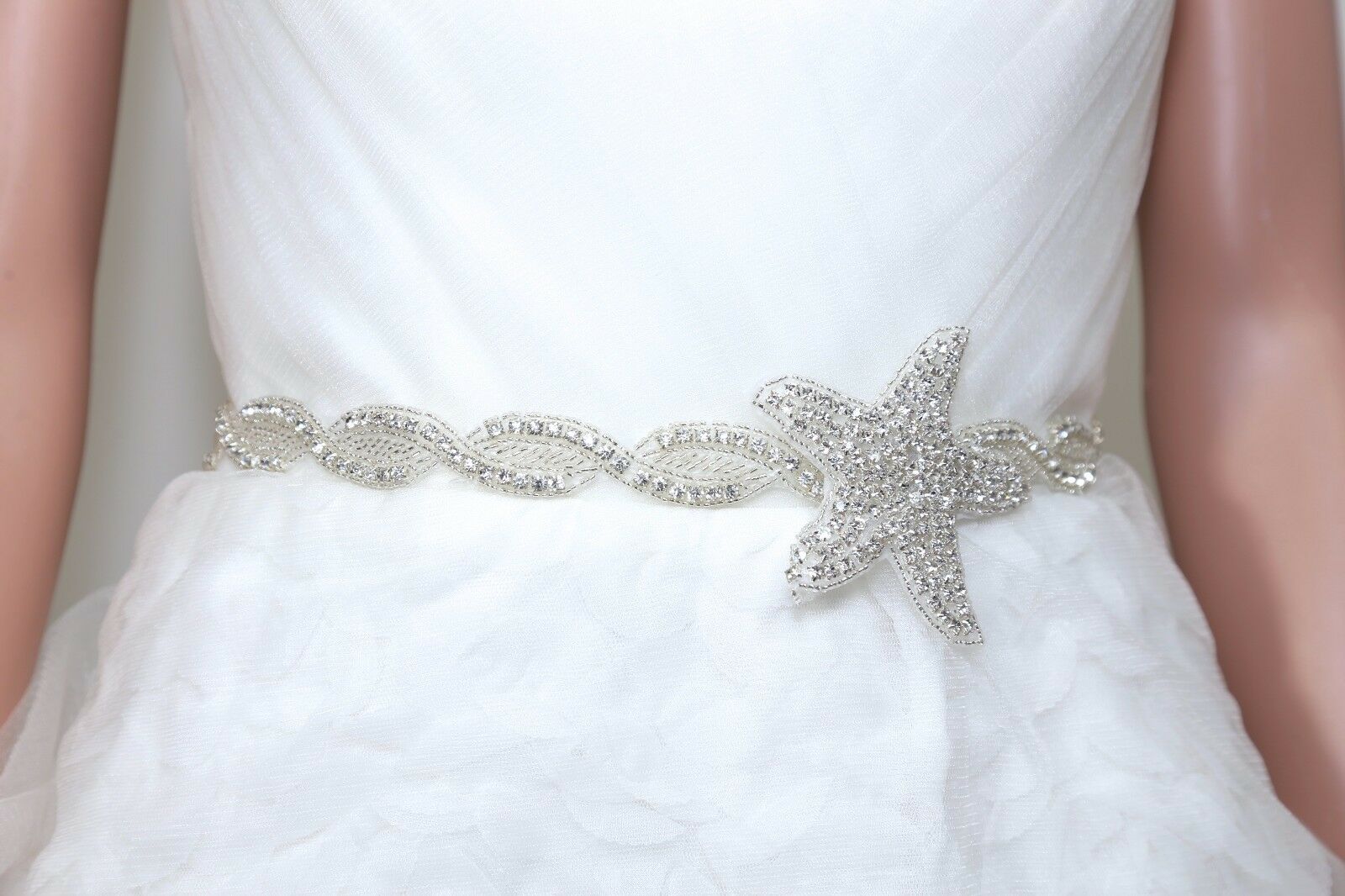 Star Starfish Diamante Bridal Rhinestone Crystal Belt Wedding Organza Sash