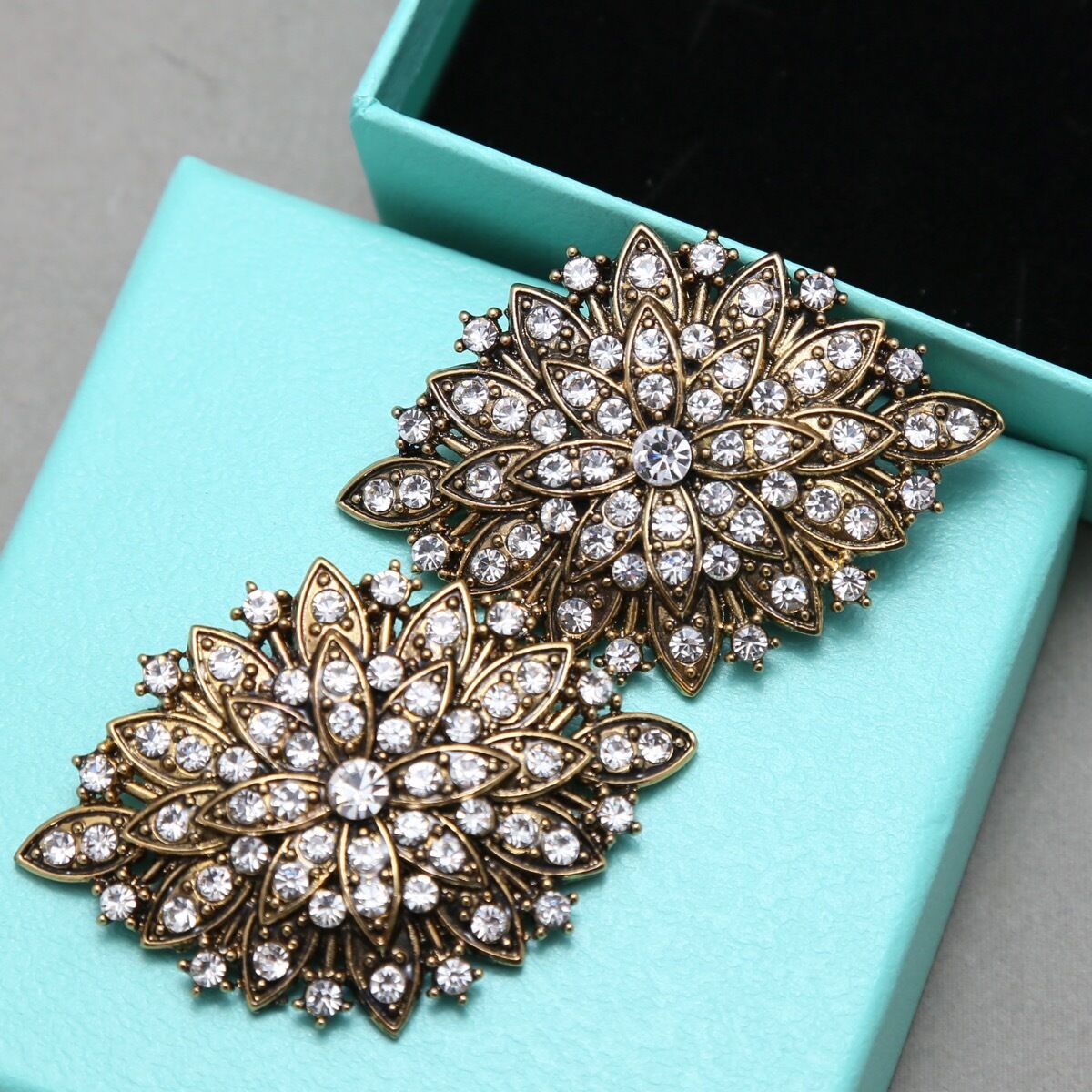 2 Pcs Crystal Shoes Old Gold Copper Rhinestone Crystal Shoe Clips