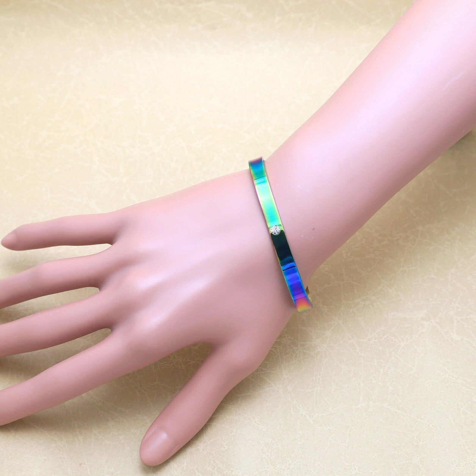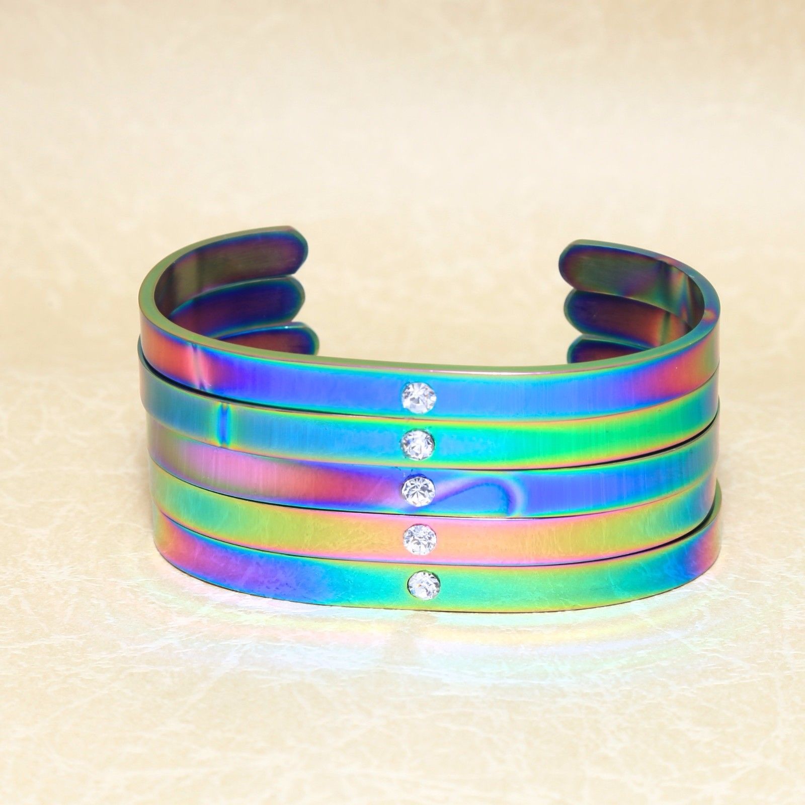 Rhinestone Crystal Birthstones 18K Rainbow Stainless Steel Cuff Bangle Bracelets