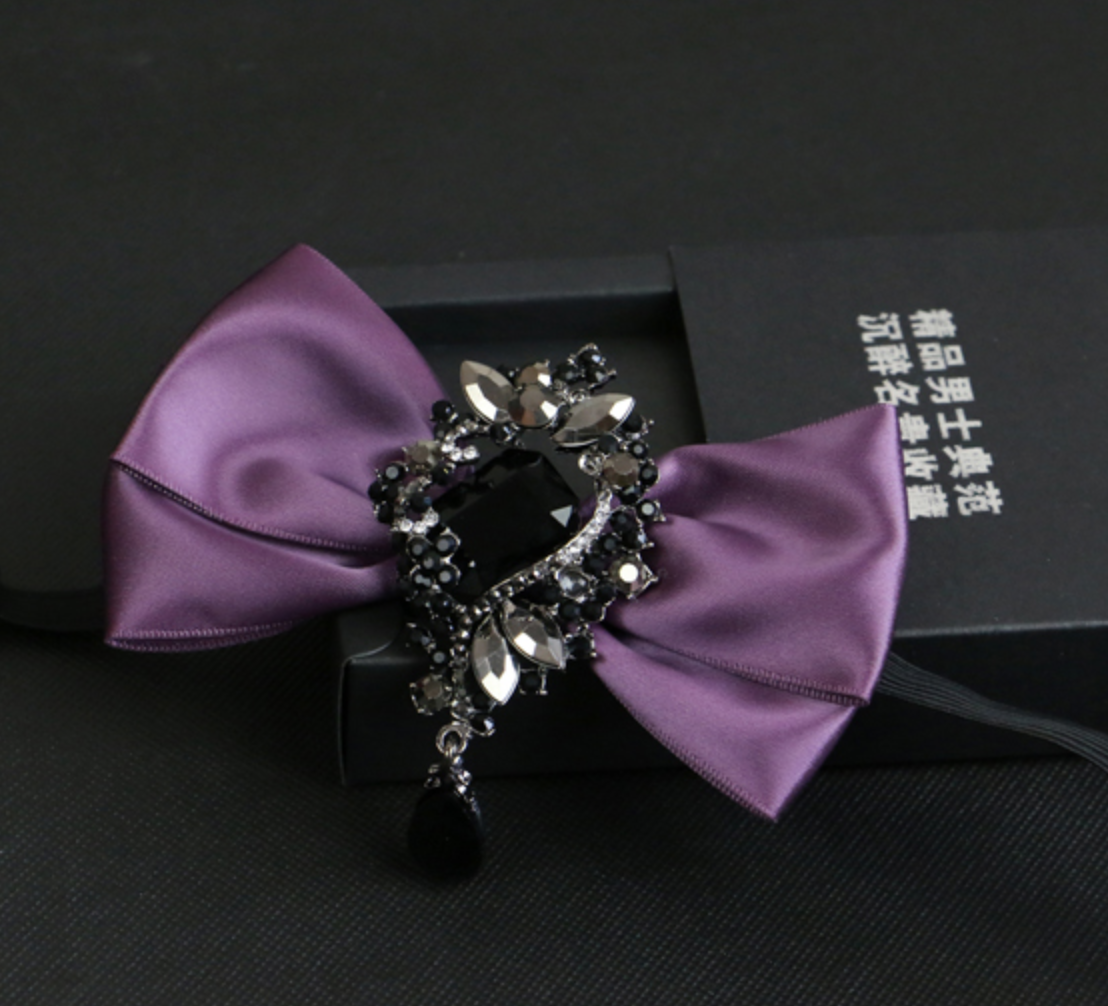 Purple Blue Red Dangle Crystal Men Pre Tied Bow Tie