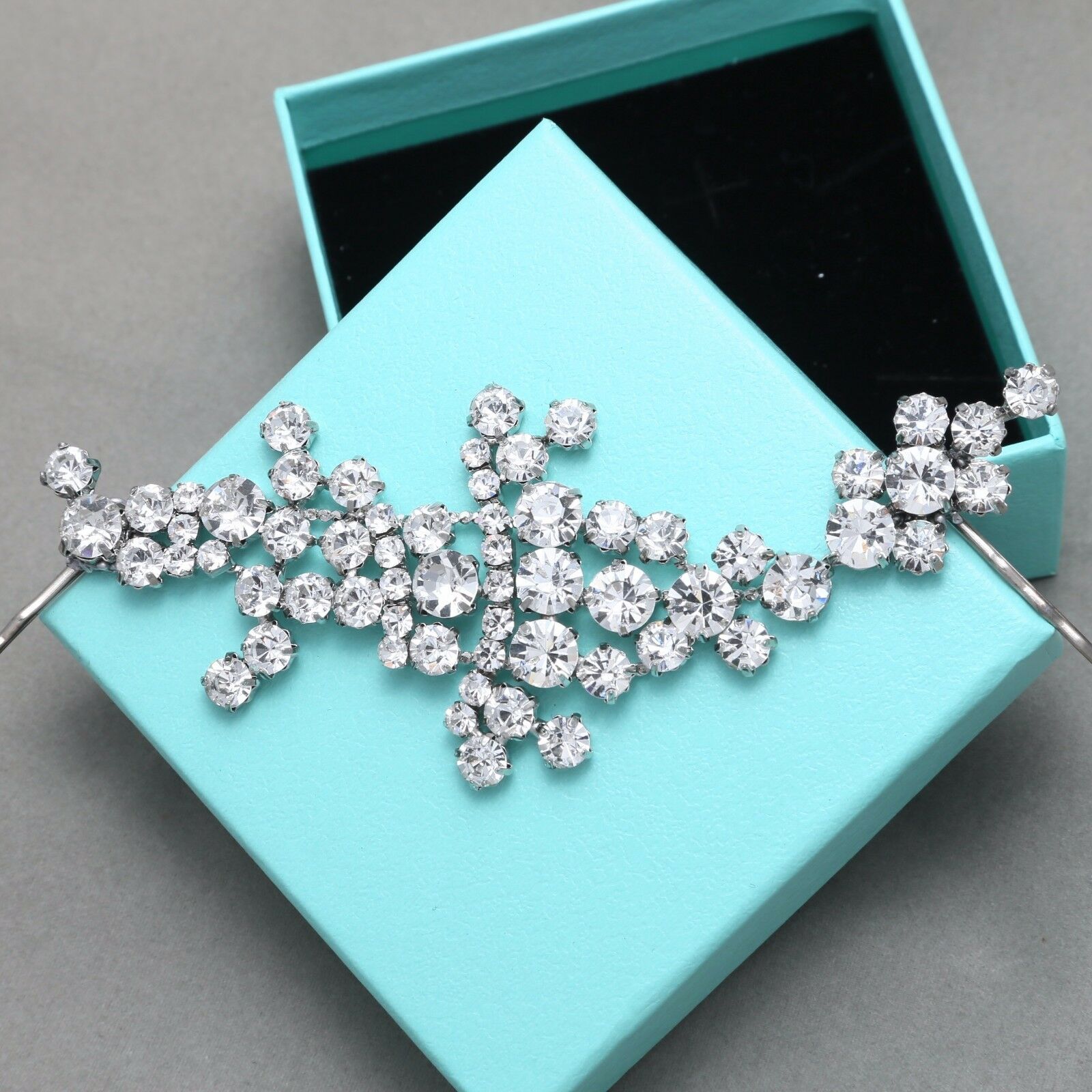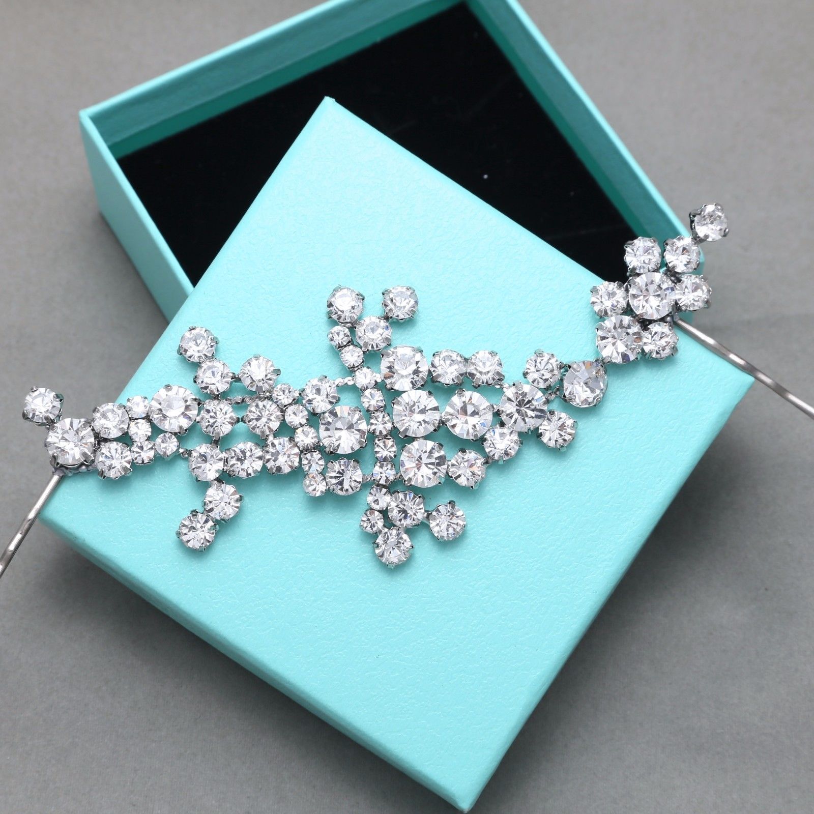 Vintage Style Silver Tone Rhinestone Crystal hair Clip Headpiece