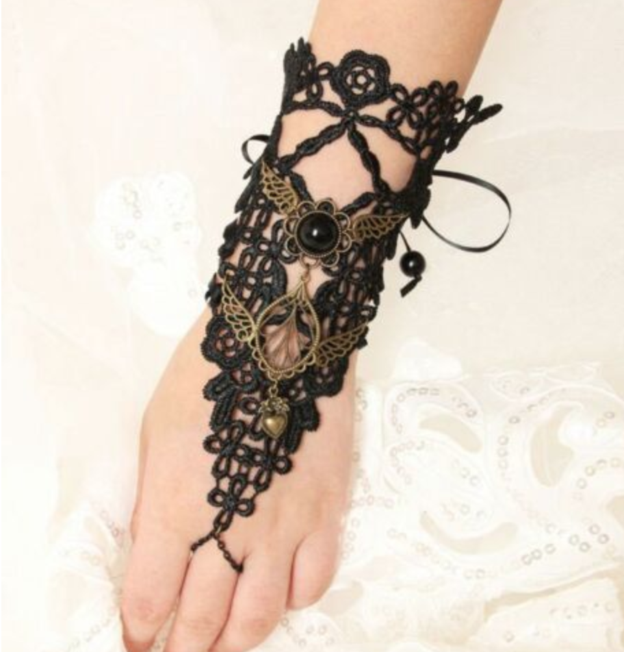 black lace bracelet, wedding bracelet, lace bracelet, ring bracelet