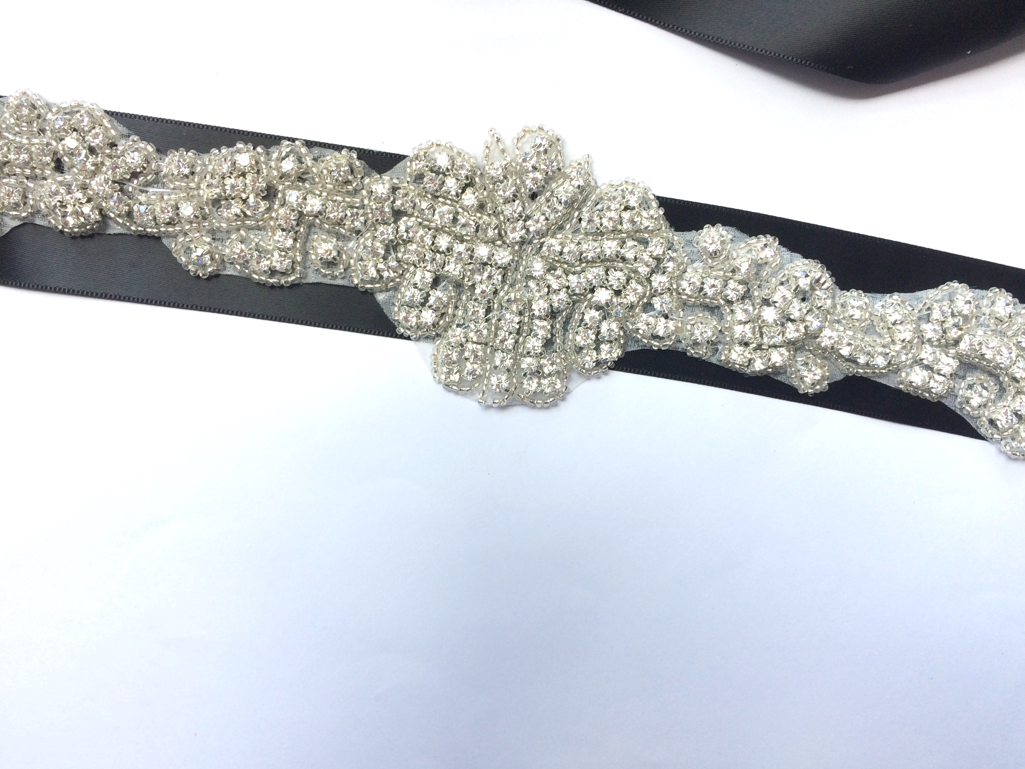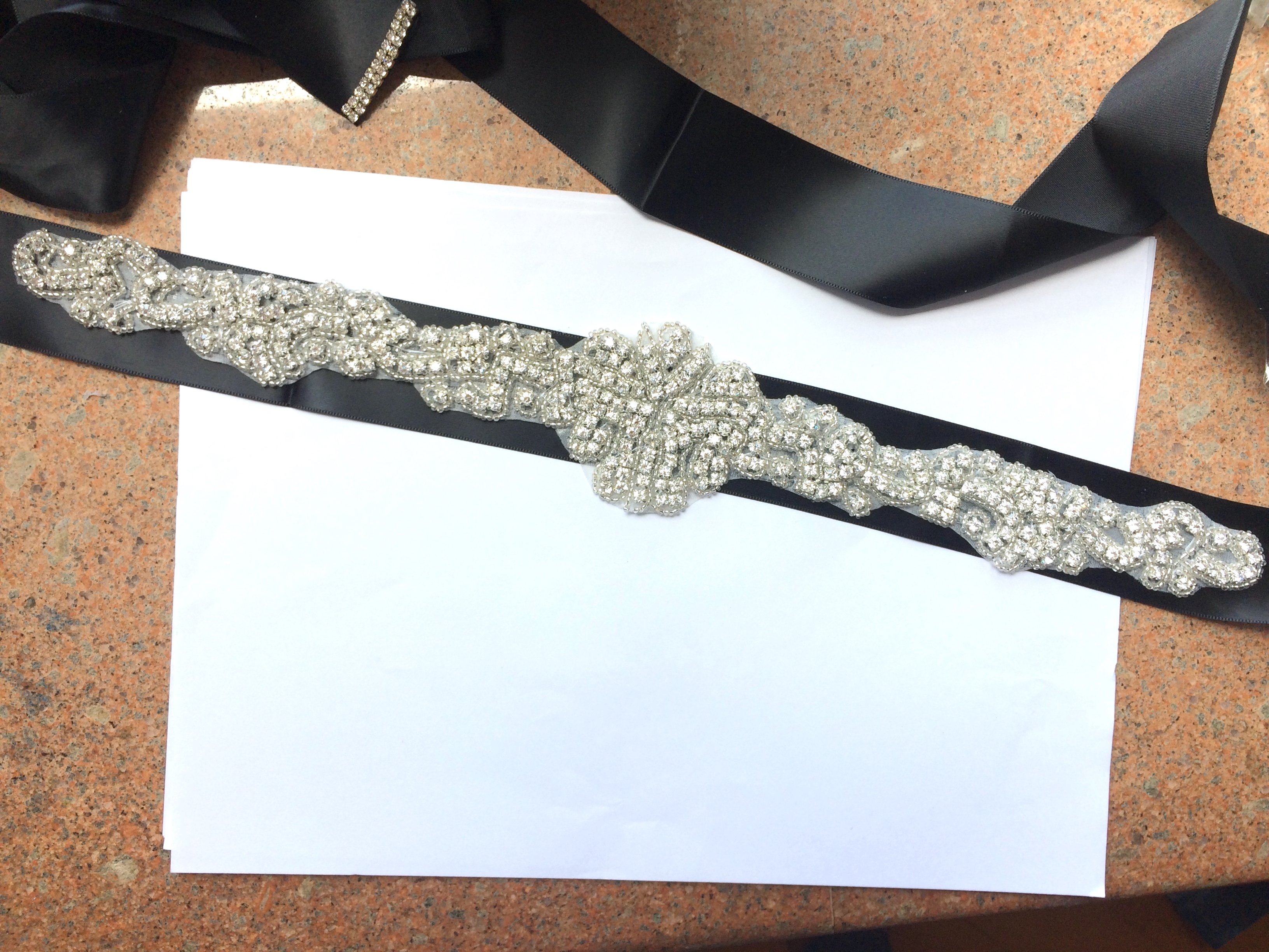 Bridal Ivory/White/Black Crystal Beaded Rhinestone Wedding Sash Wedding Belt