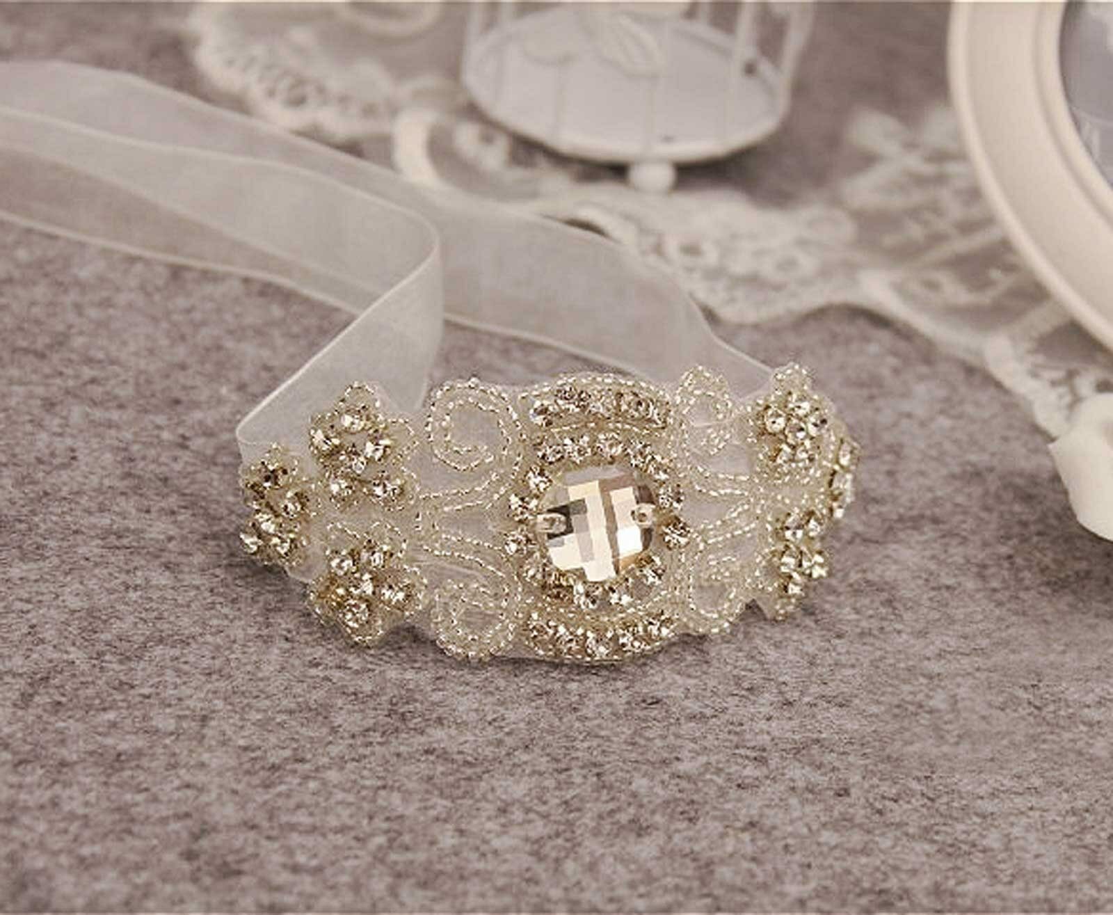 Rhinestone Crystal Applique Organza Bridesmaids Bracelet Bangle Wedding Jewelry