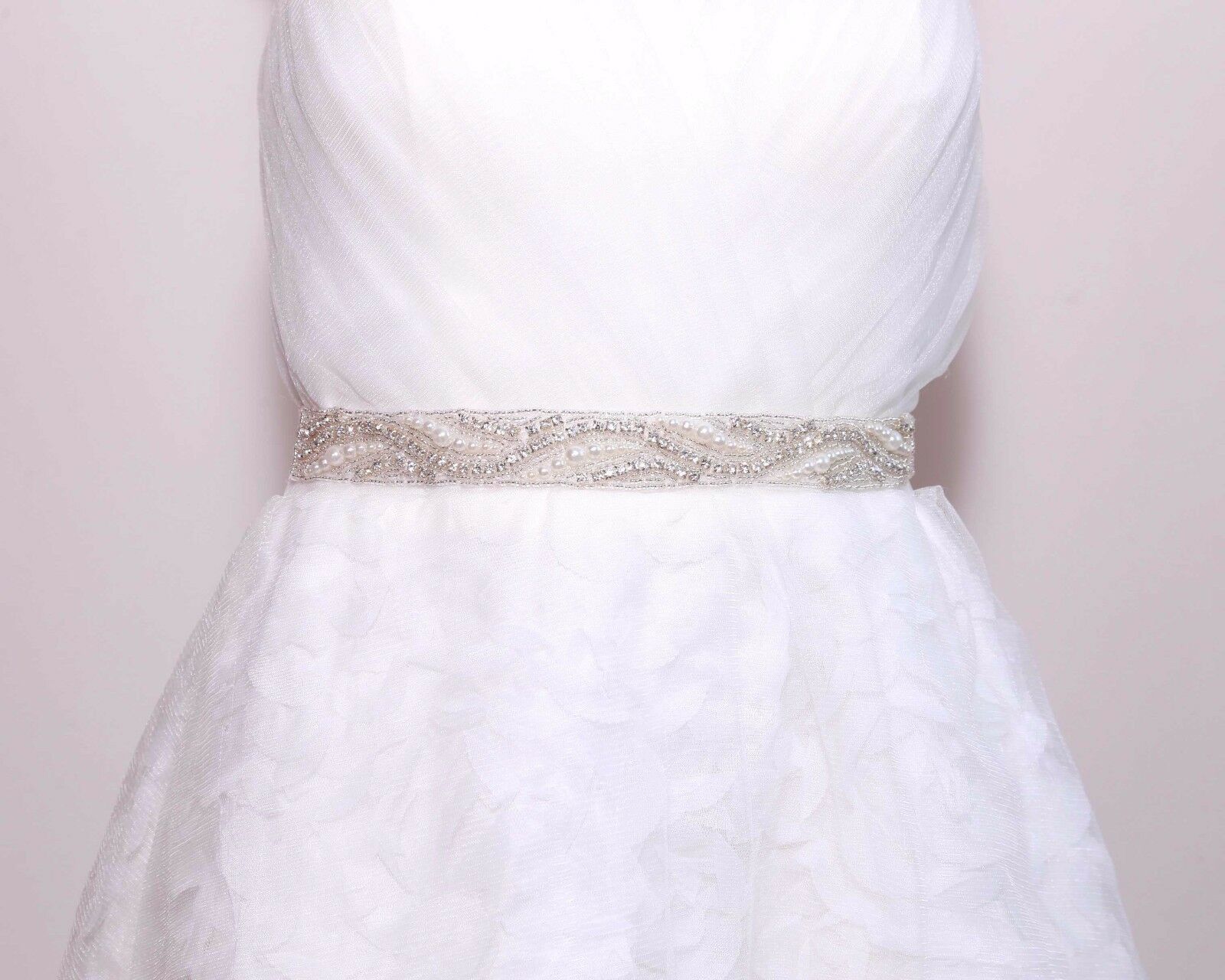 Vintage Style Rhinestone Crystal Pearl Bridal Ribbon Wedding Sash Dress Belt