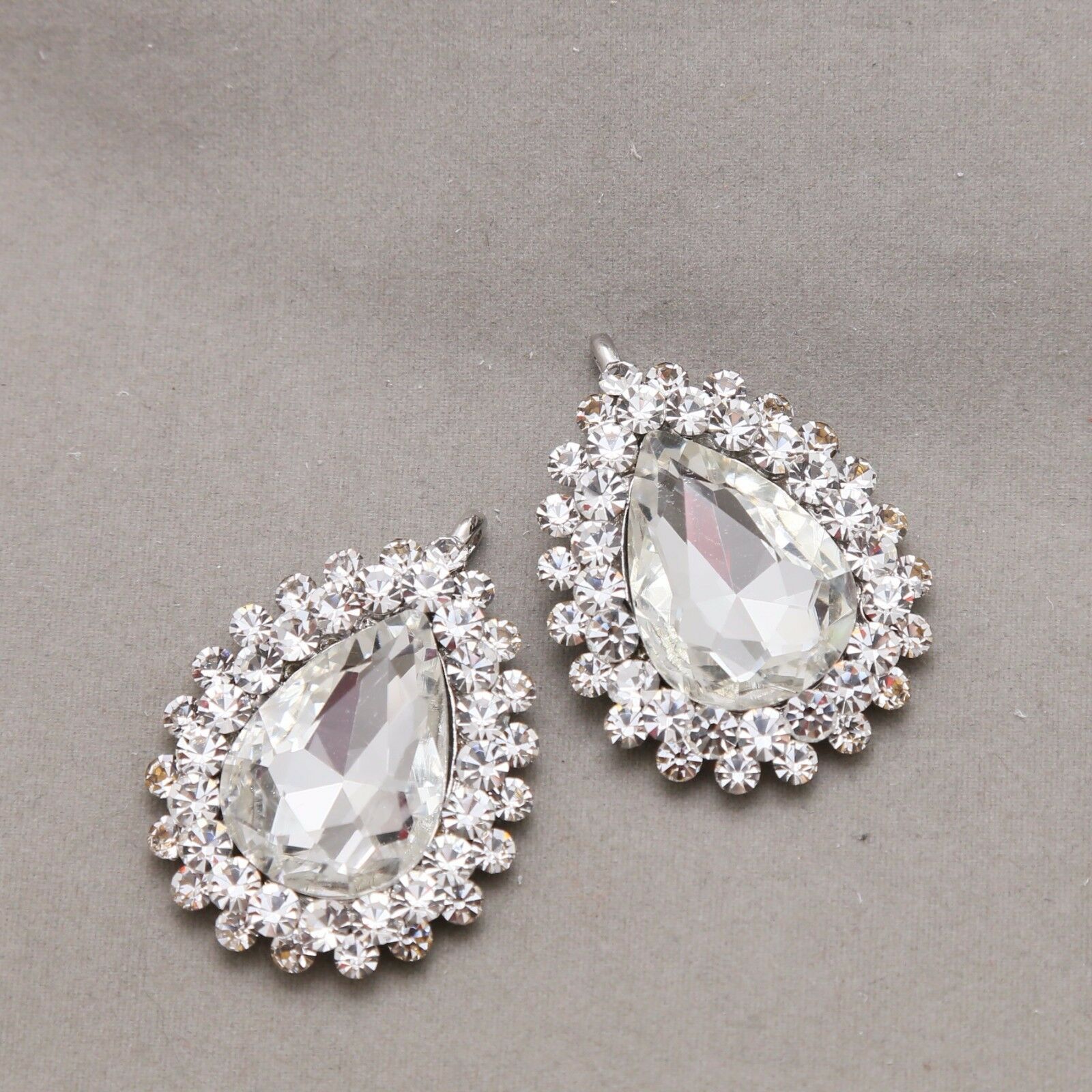 2 Pcs - Gold Or Silver Tone Teardrop Rhinestone Crystal Earrings Necklace Pendant