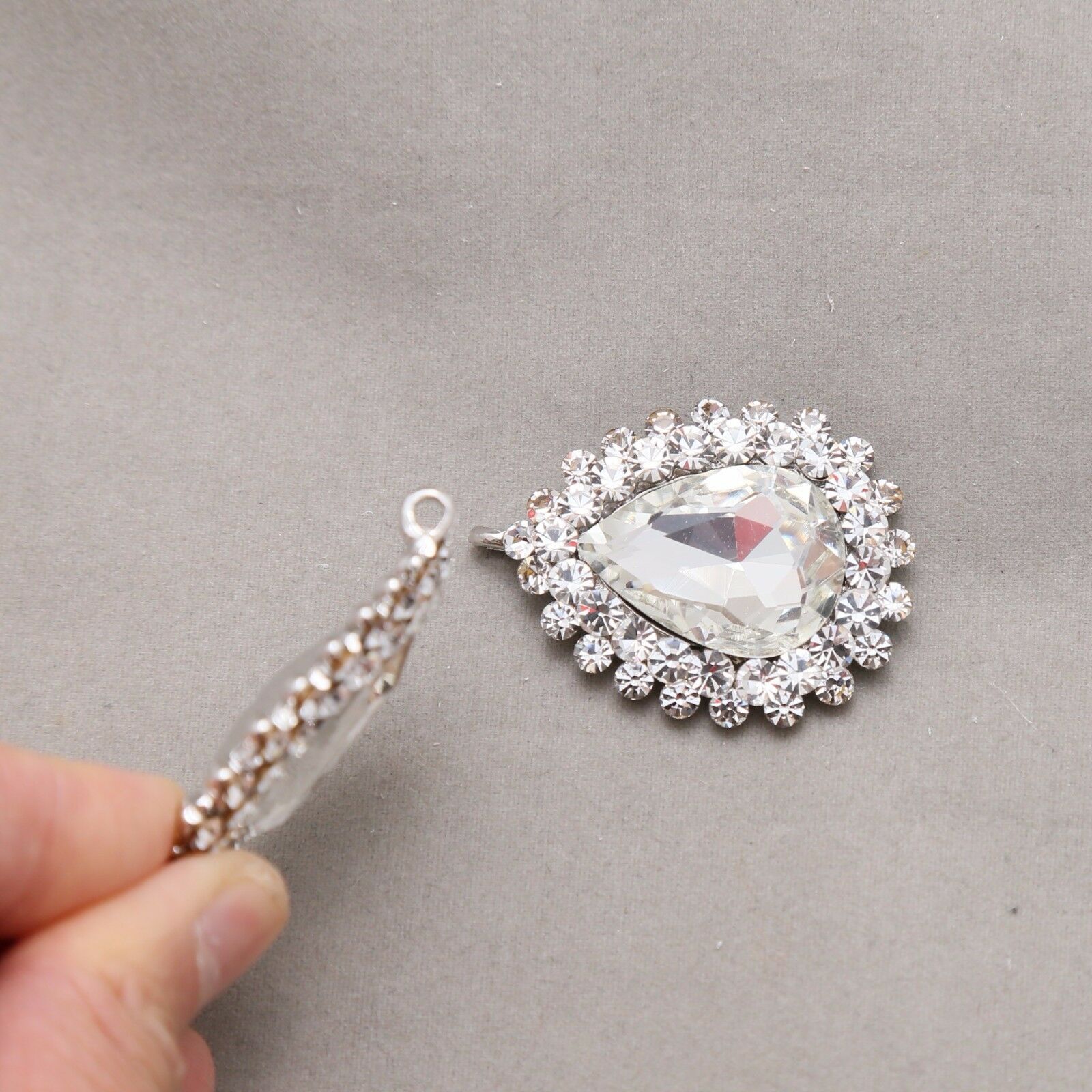 Large Silver Tone Teardrop Rhinestone Crystal Earrings Necklace Pendant