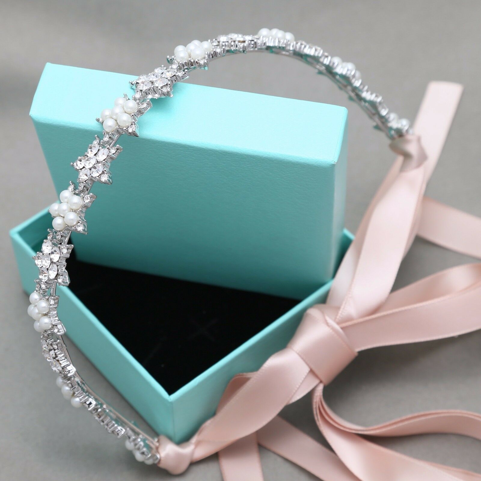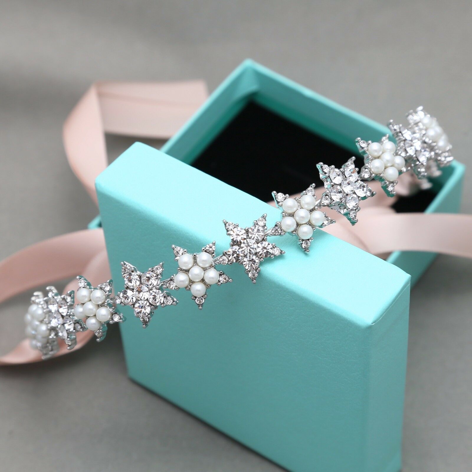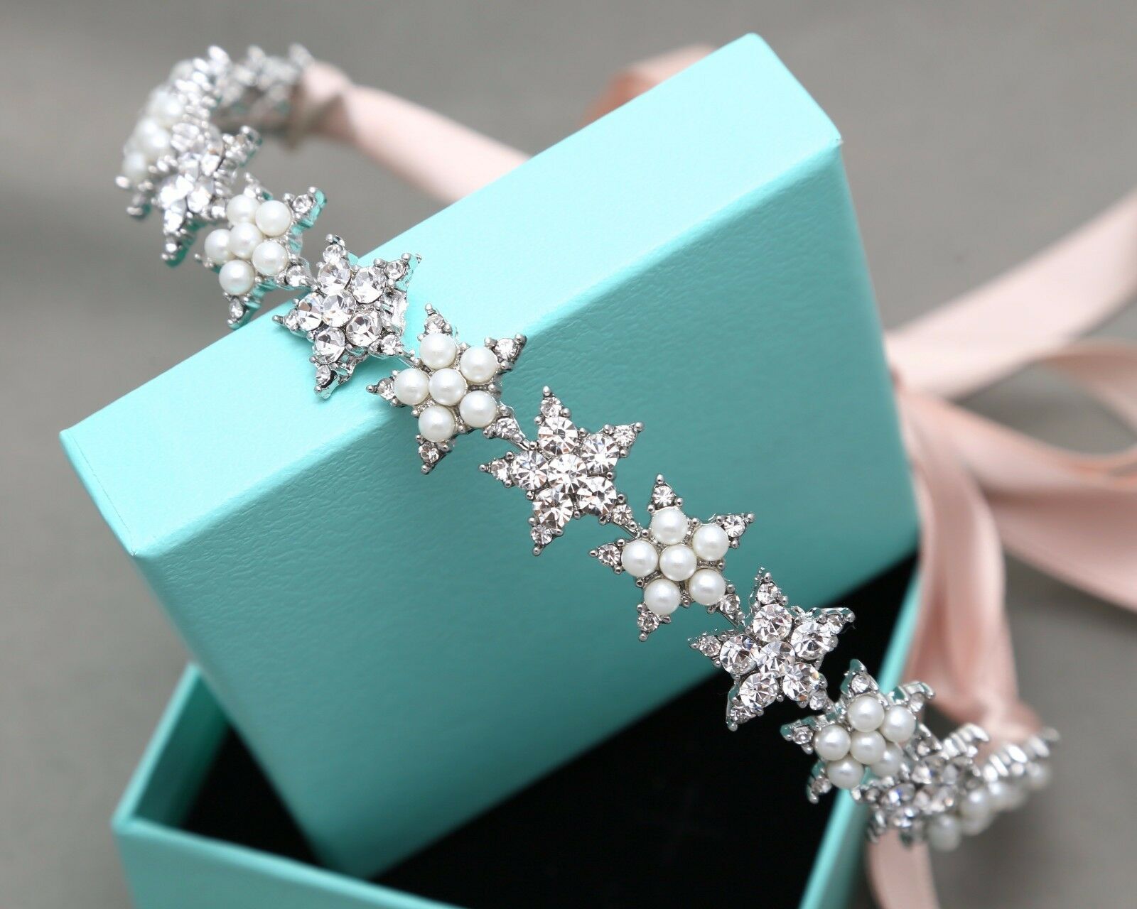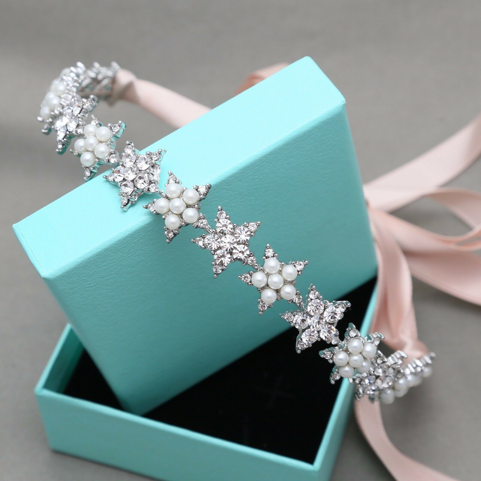 Wedding Rhinestone Crystal Silver Pearl Star Tiara Vine