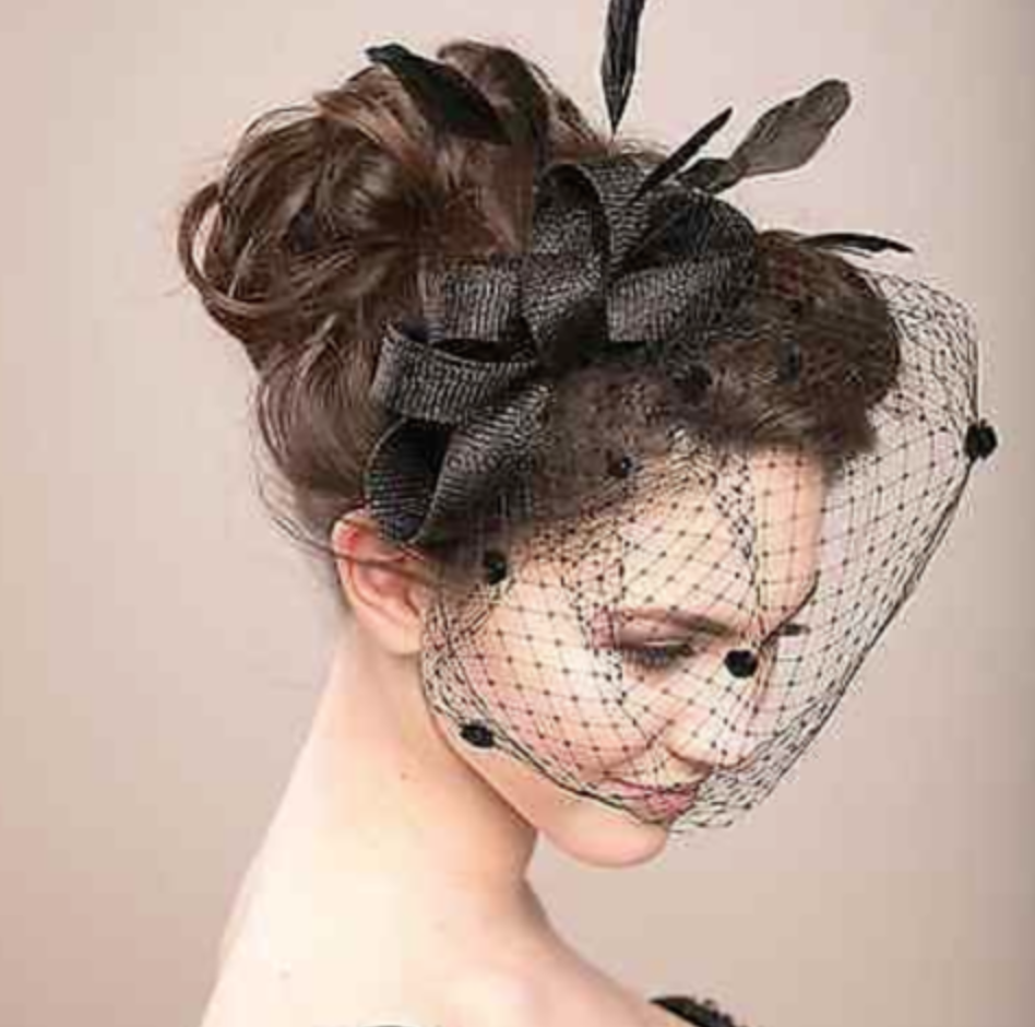This feather veil hair clip with an alligator clip at back.