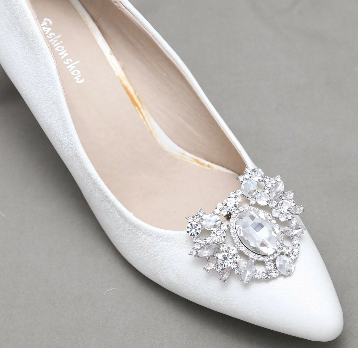 2 PCs Handmade Pearl Crystal Beaded Wedding Shoe Clips