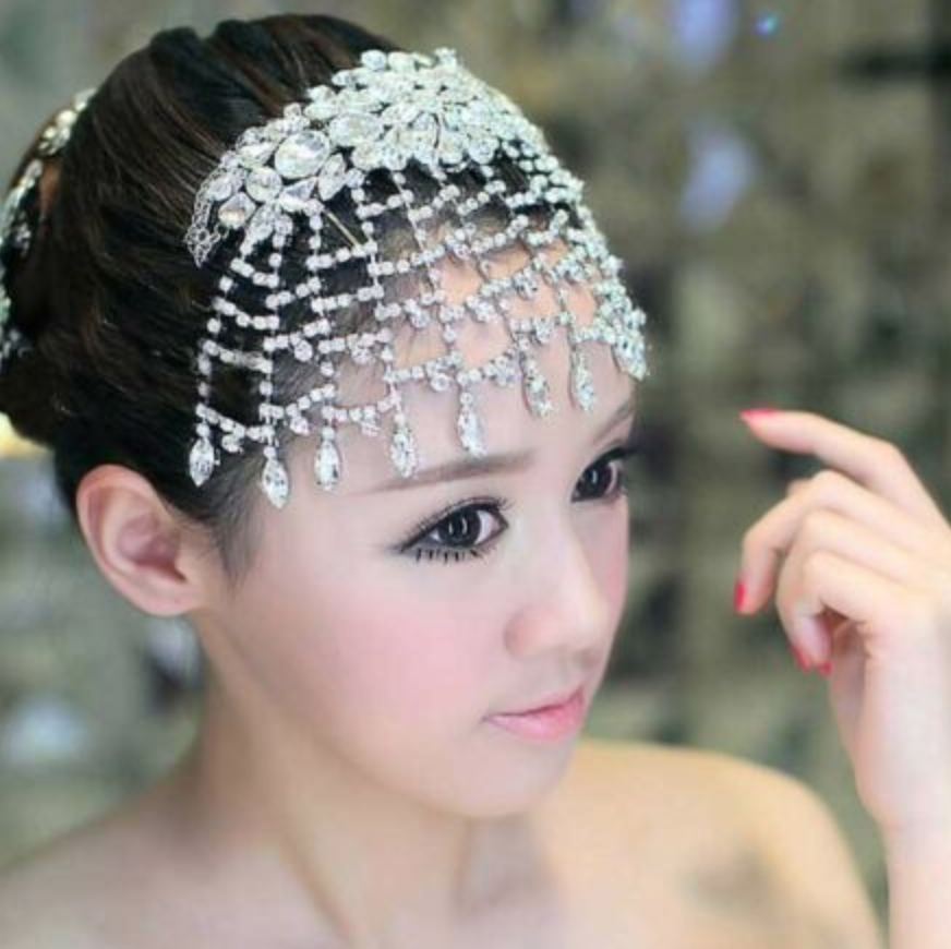 Diamante Crystal Dangle Crown Hair Droplet Chain Wedding Hair Accessory