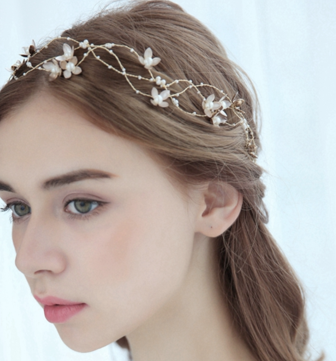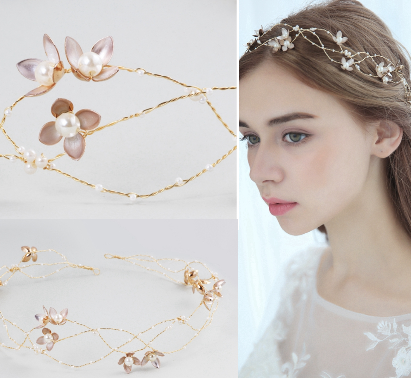 Wedding Rhinestone Crystal Gold Flower Pearl Bridal Leaf Tiara Vine Wreath
