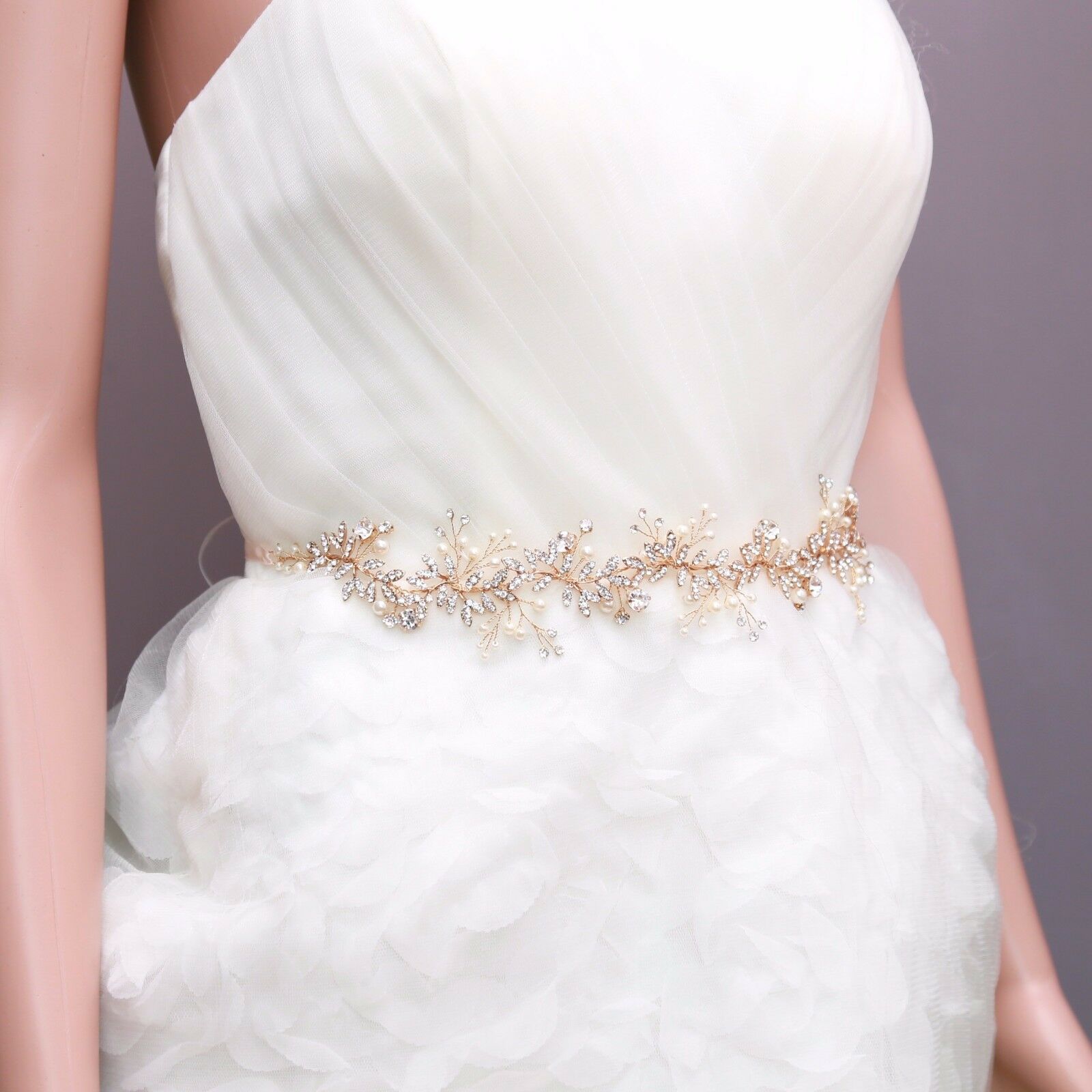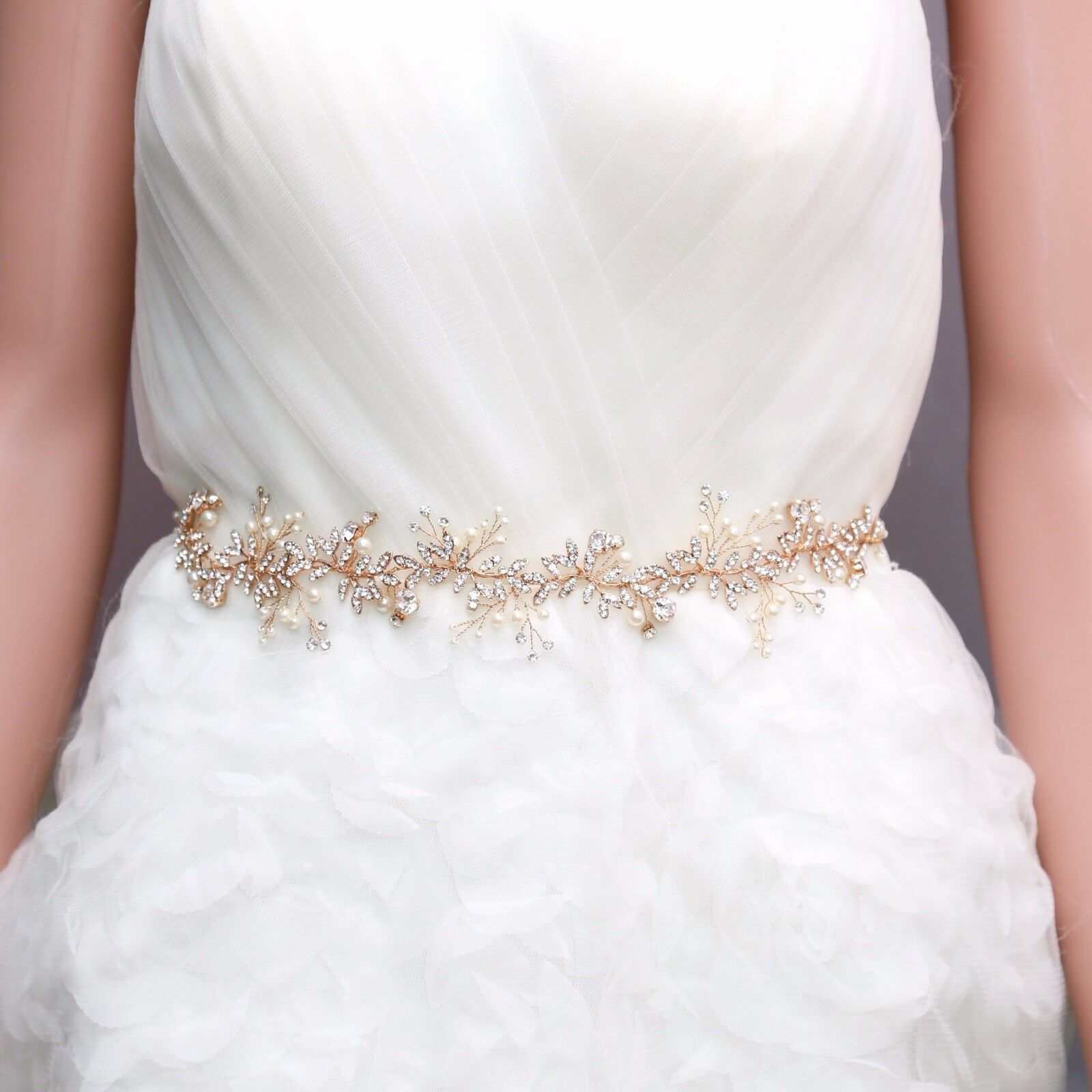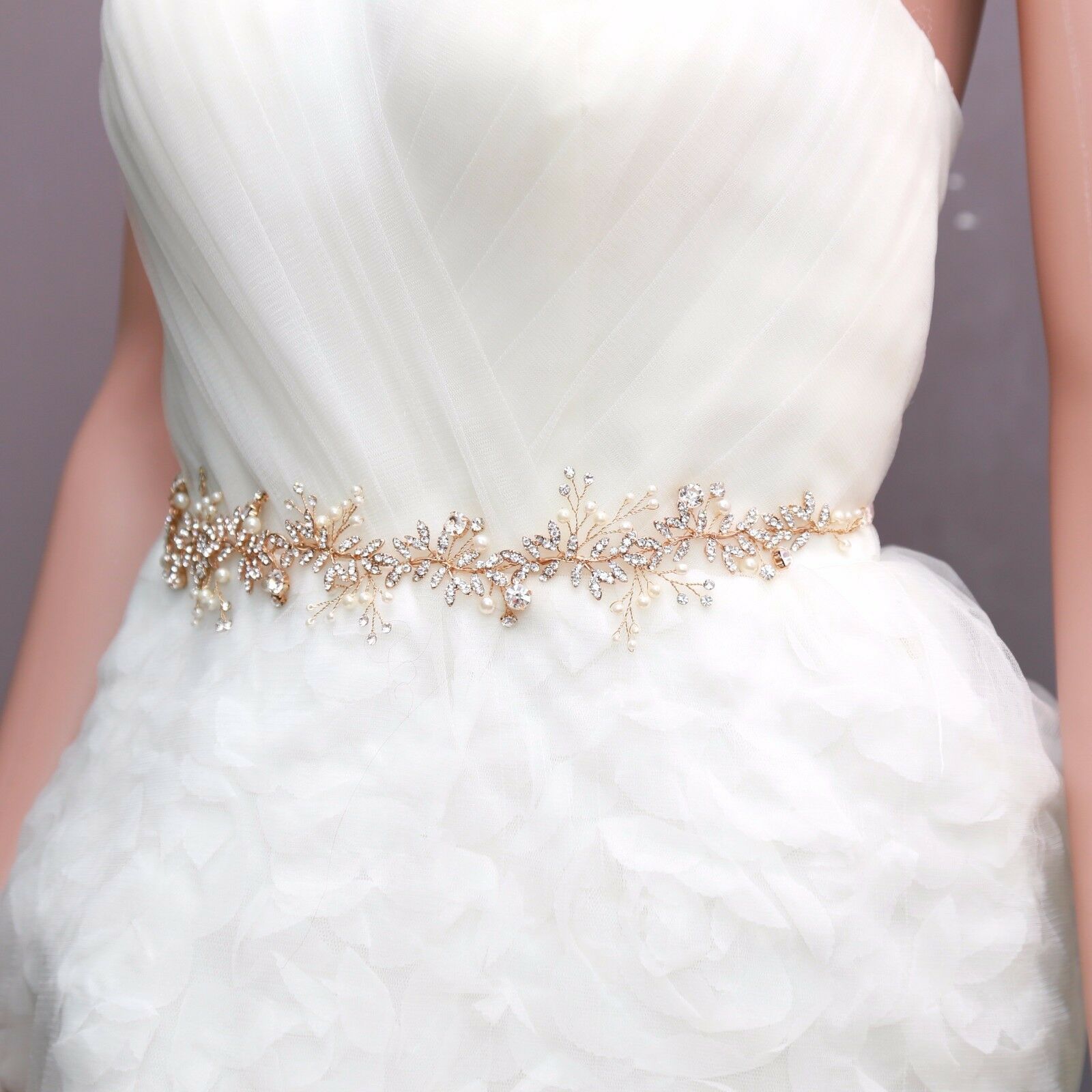 Bridal Wedding Dress Pearl Beaded Gold Beads Rhinestone Crystal Gold Sash Belt