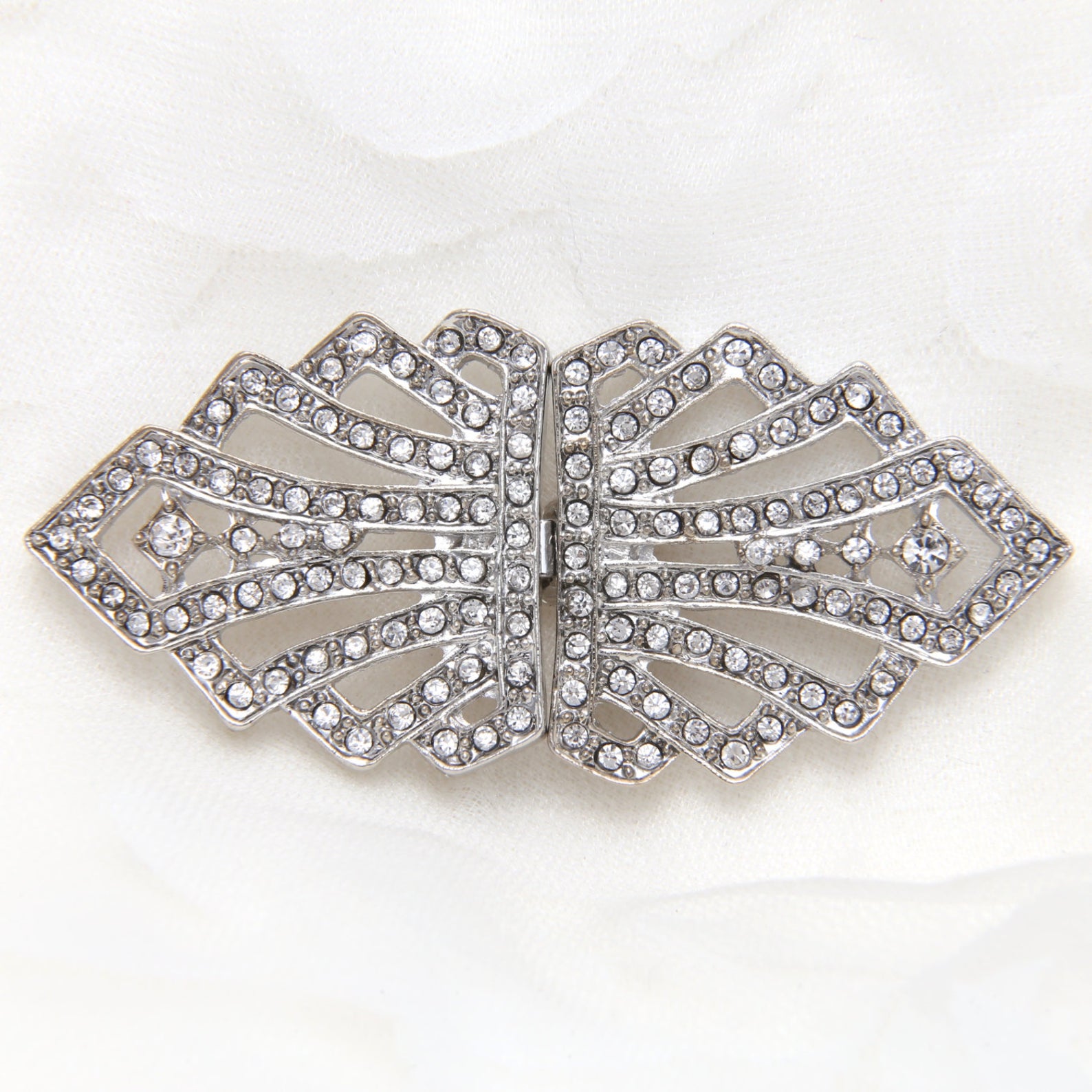 Vintage Style Silver Tone Rhinestone Crystal Wedding Sash Belt Hook Clasp Button