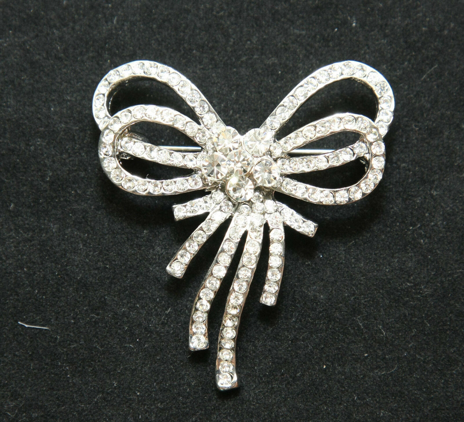 Rhinestone Crystal Silver Bridal Wedding Bow Brooch Pin