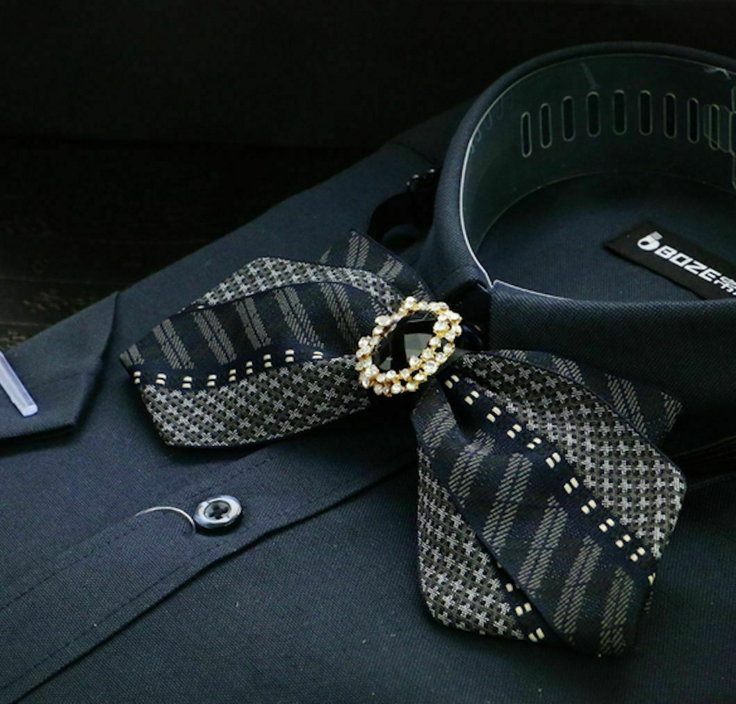 Men Pre Tired Self Bow Tie Adjustable Polyester Crystal Bow Tie Necktie