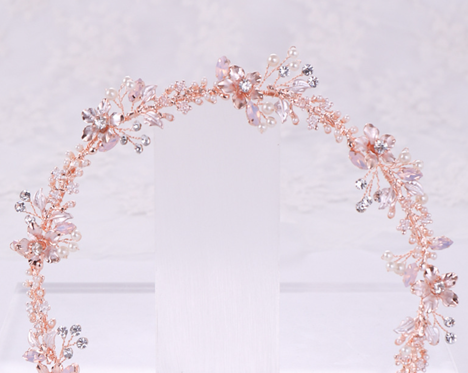 Silver Pink Or Rose Gold Flower Rhinestone Crystal Wedding Tiara Hair Headpiece