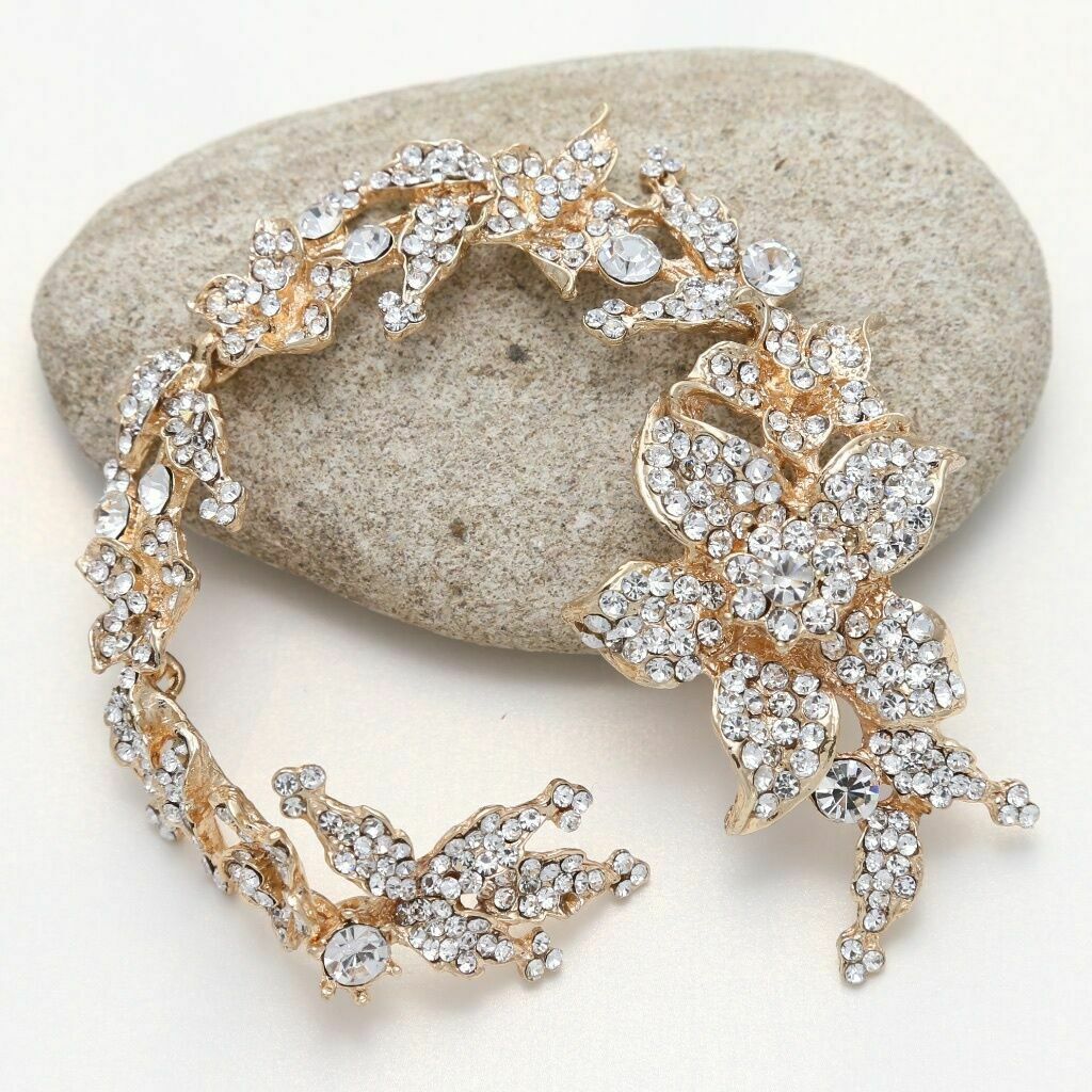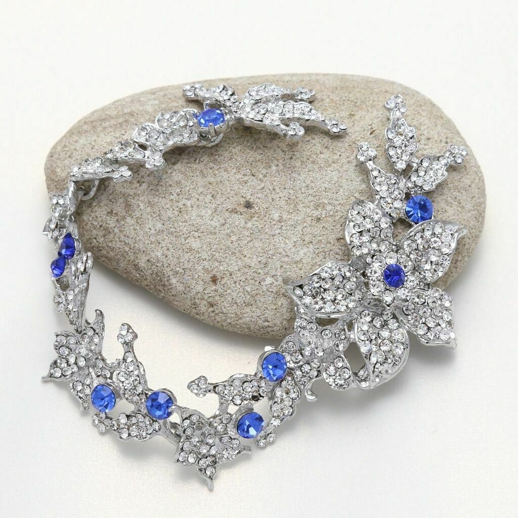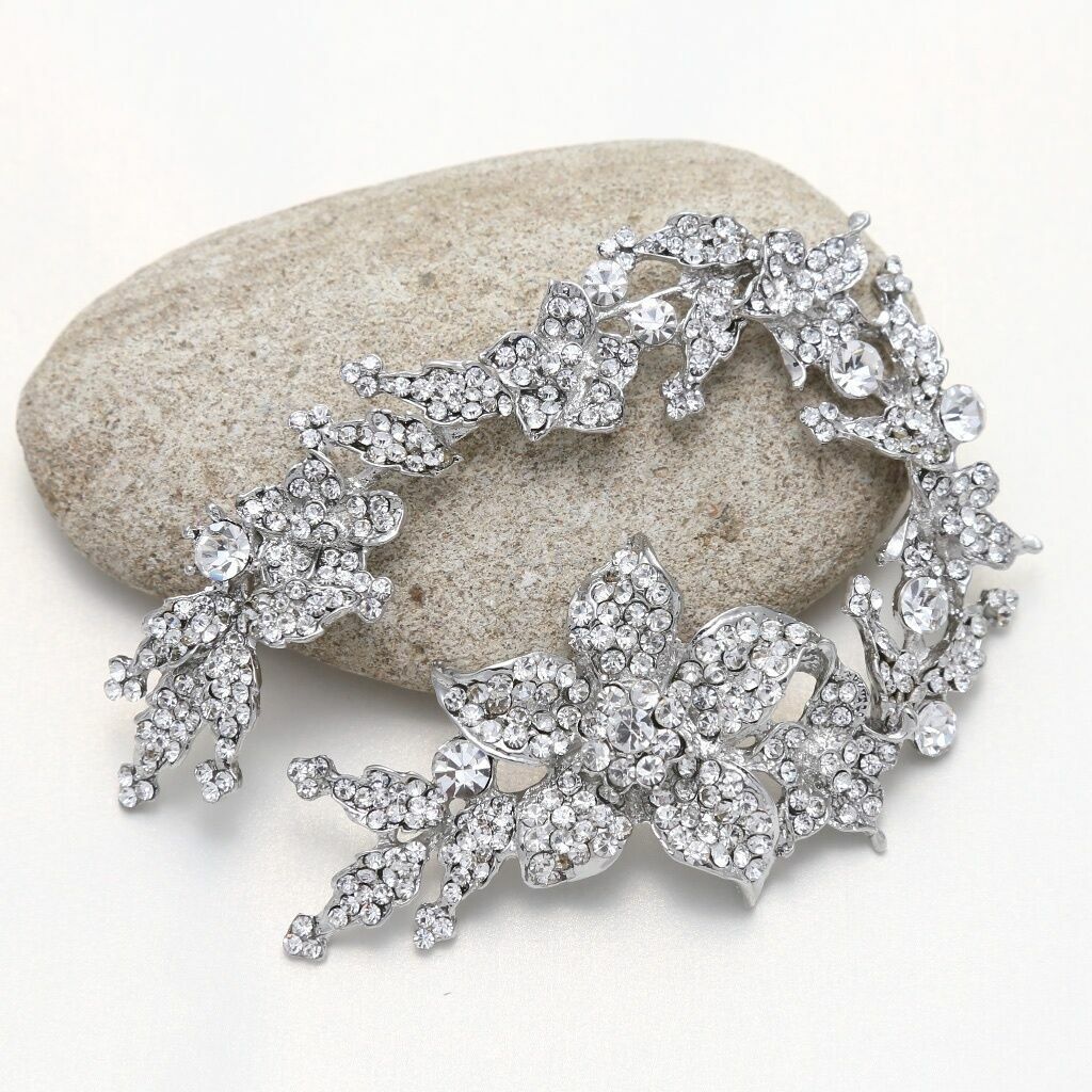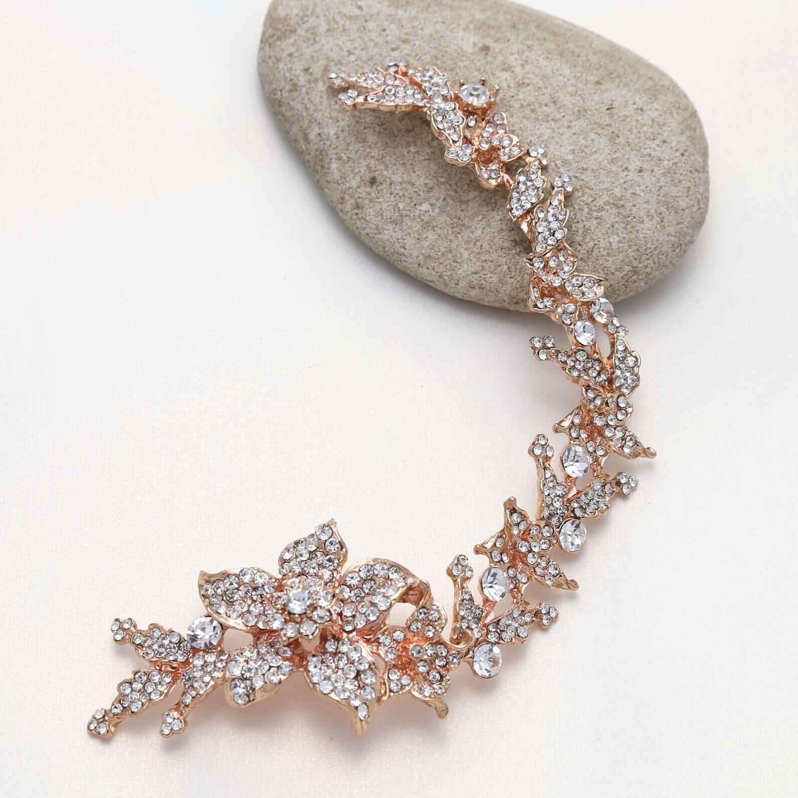 Rhinestone Flower Wedding Tiara Crystal Hair Chain Headpiece