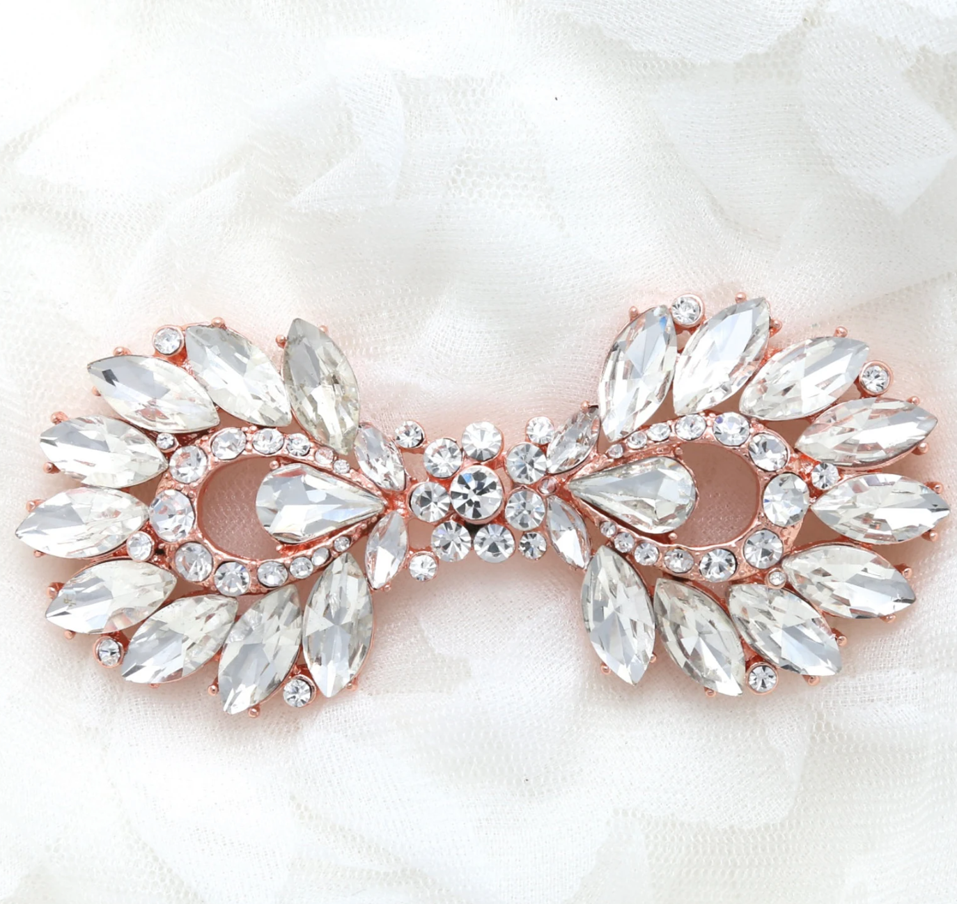 Rose Gold Dress Sash Belt Crystal Rhinestone Wedding Bridal Clasp Buckle Matching Button