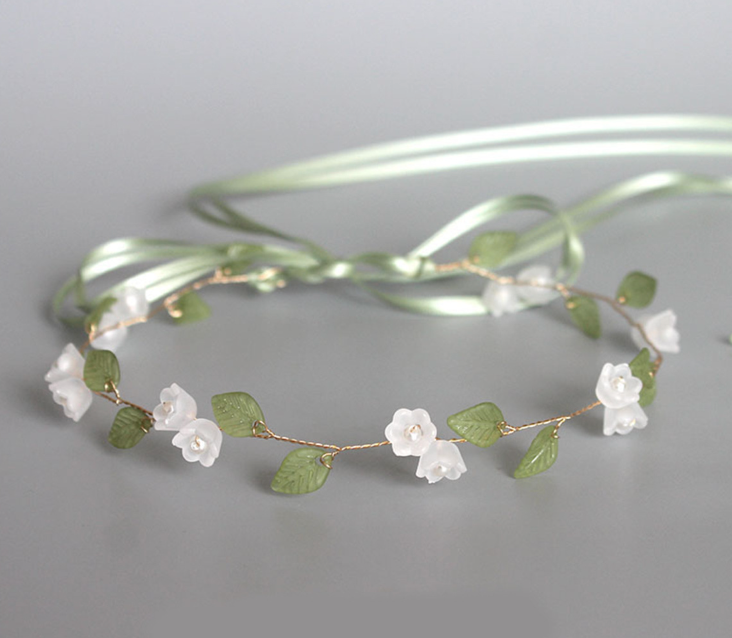 This white transparent resin flower vine wire handmade with wire, beads and metal butterflies