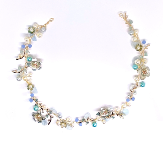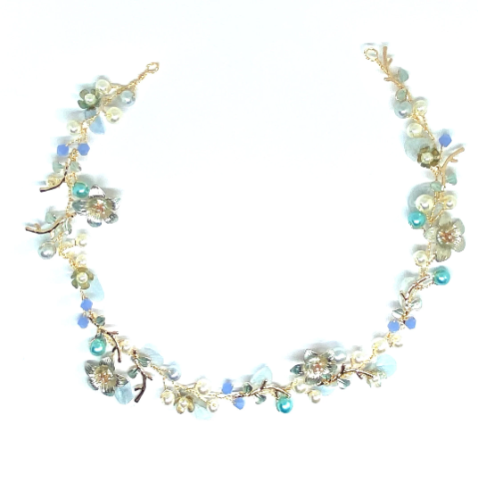 Properties: crystal beads, metal, wire, faux pearl, fibre, preserved flower