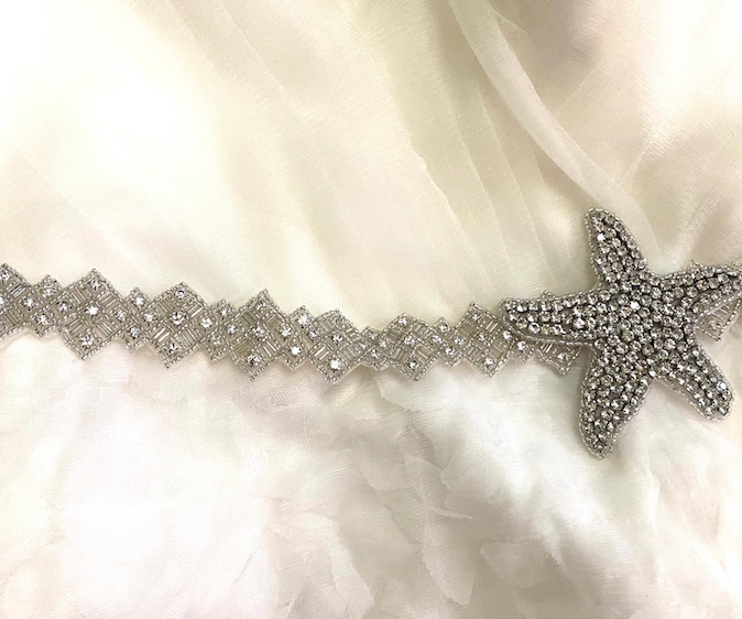 Diamante Rhinestone Wedding Bridal Starfish Silver Tone Crystal Applique Sash Belt