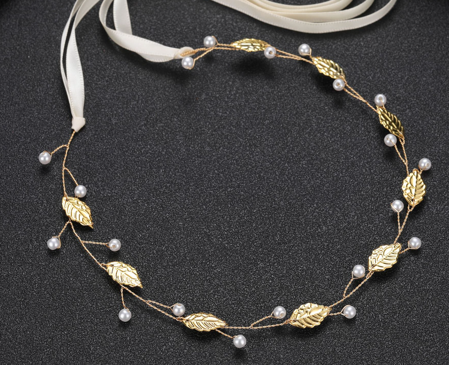Gold Leaf Copper Faux Pearl Wedding Tiara