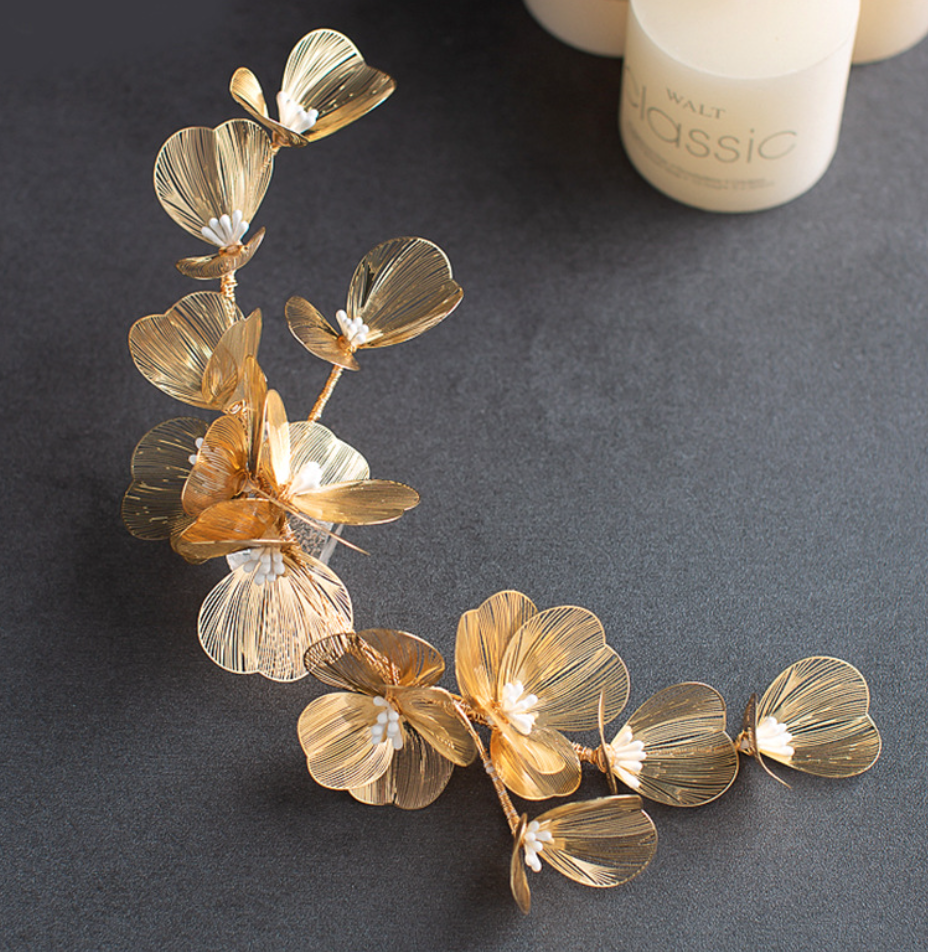 A set Of Gold Tone Wedding Headpiece Flower Wedding Hair Tiara Accessory