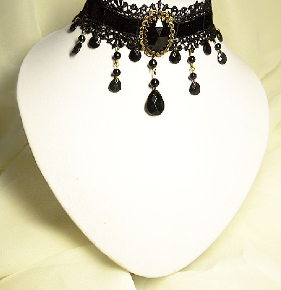 ROMANTIC GOTH LACE CHOKER COPPER NECK BLACK ROCOCO PARTY HANDMADE NECKLACE