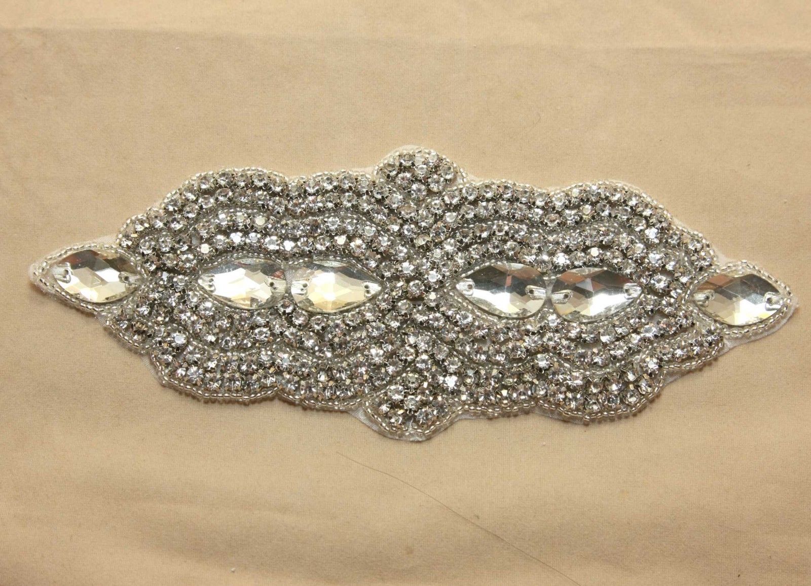 Sew/Iron Crystal Rhinestone Sash Oval Applique Wedding Bridal Silver Craft Motif