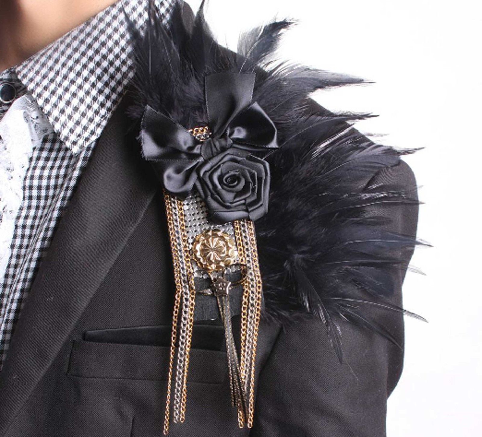Black Feather Wedding Men Groom Brooch Pin Badge