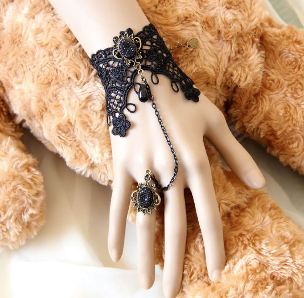 BLACK Lace Bracelet Goth Victorian Lolita Steampunk Rococo