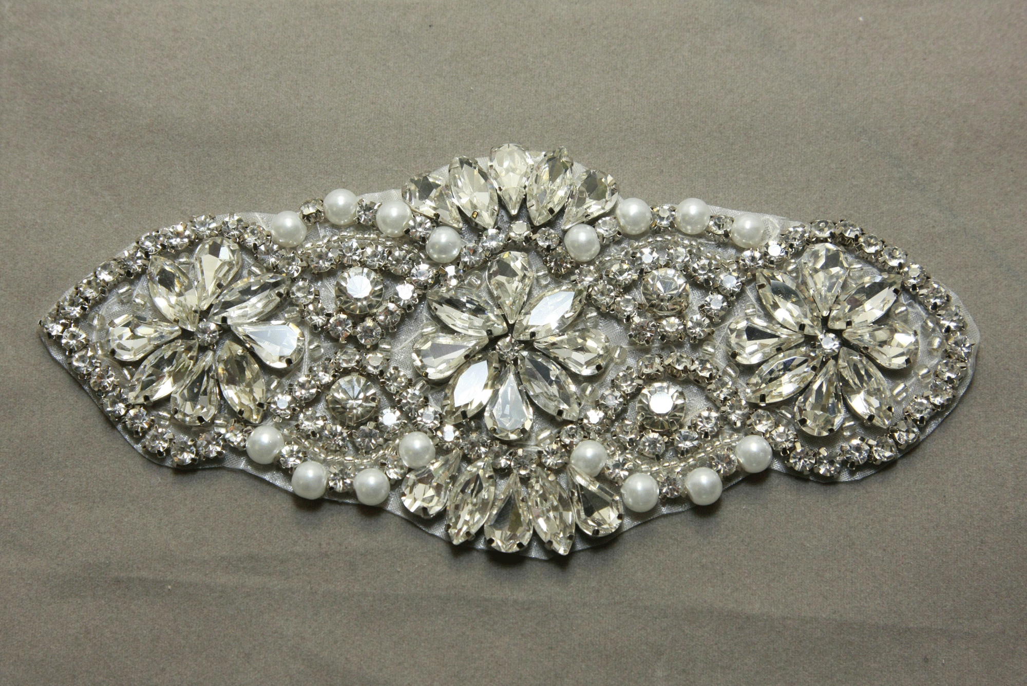 FREE SHIP - Faux Pearl Crystal Rhinestone Applique Glass Iron on Applique Patch