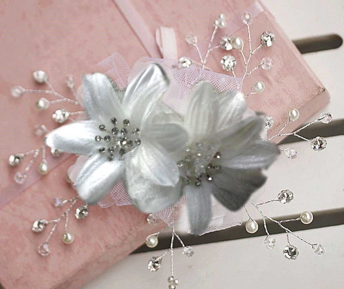 Faux Pearl Petal Flower Beads Rhinestone Crytsal Hair Clip