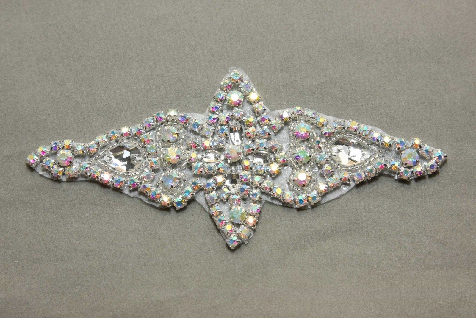 Aurora Crystal Rhinestone Sash Applique Wedding Bridal Silver Craft Motif