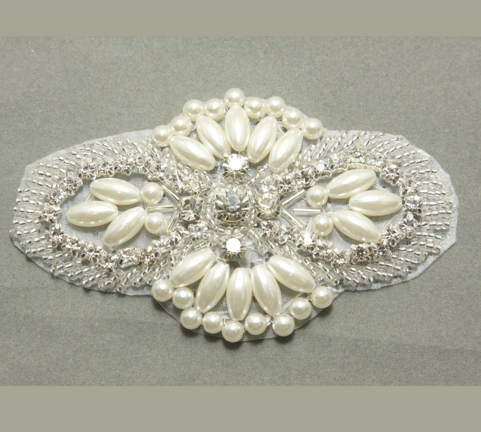 7cm Dress Decoration Crystal Rhinestone Rhombus Pearl Sew Iron Applique Patch